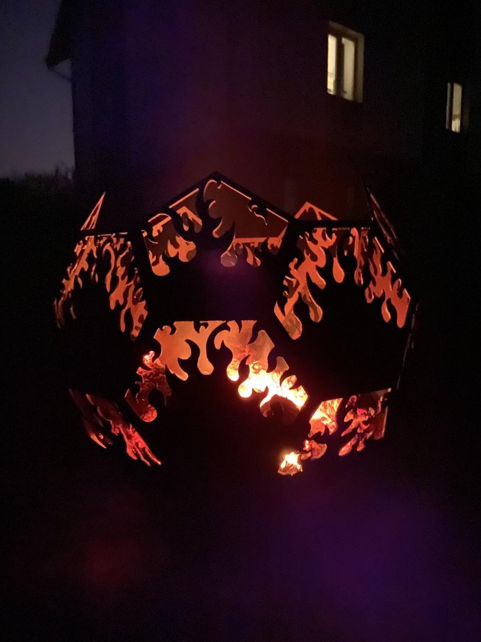 Очаг для костра "Огненный Мяч" изготавливается из прочной стали путем лазерной резки,что делает его очень красивым и эффектным дизайнерским решением для Вашего участка. Относительно небольшой вес позволит Вам самостоятельно пермещать очаг в любое место Вашего участка, не повреждая почву. С точки зрения экологической безопасности данный очаг будет оптимальным вариантом.Очаг грунтуется и покрывается качественной жаростойкой краской,это предохраняет металл очага от воздействия высоких температур,и соответственно,продлевает срок его эксплуатации.Очаг является универсальным,на нем Вы можете приготовить,разместив предварительно стойки и решетку,шашлык,колбаски,сосиски и мн.др.,либо просто развести в нем костер и любоваться пламенем в теплой дружеской компании! Габариты очага: Д650мм*Ш650мм*В680мм. Толщина стенок: 3,5мм. Вес изделия: 25кг.