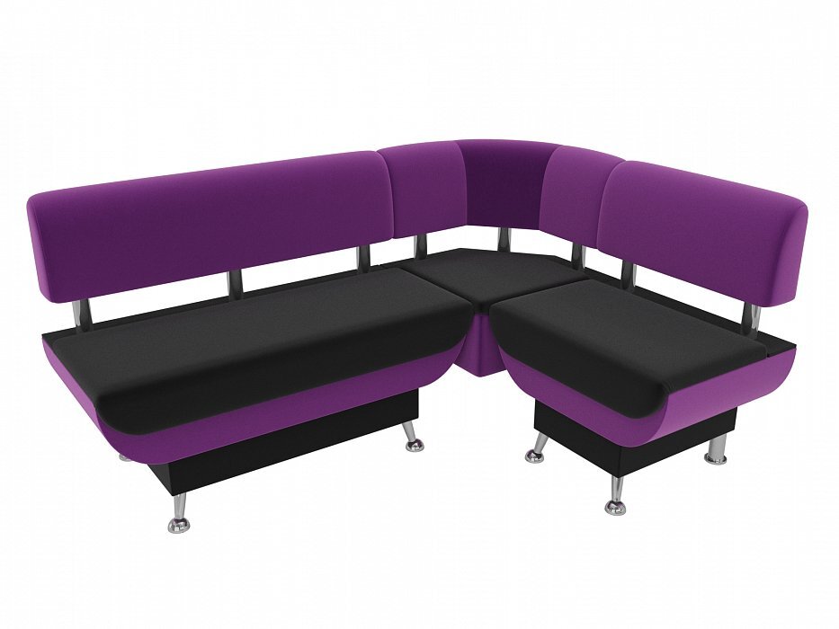 Кухонный угловой диван Альфа Микровельвет черный\фиолетовый
