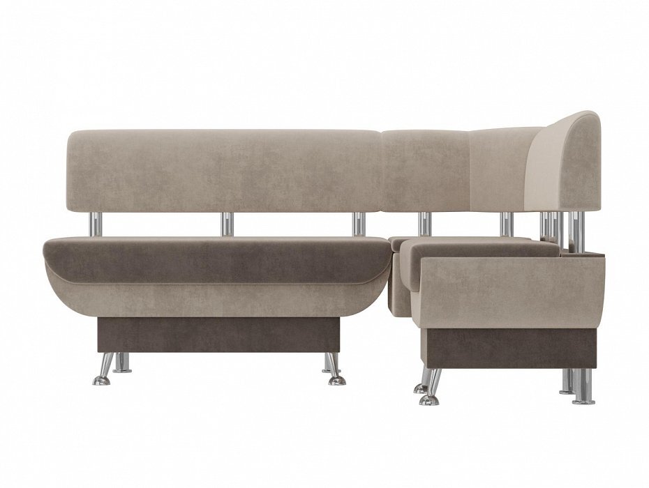 Кухонный угловой диван Альфа Велюр Коричневый\Бежевый