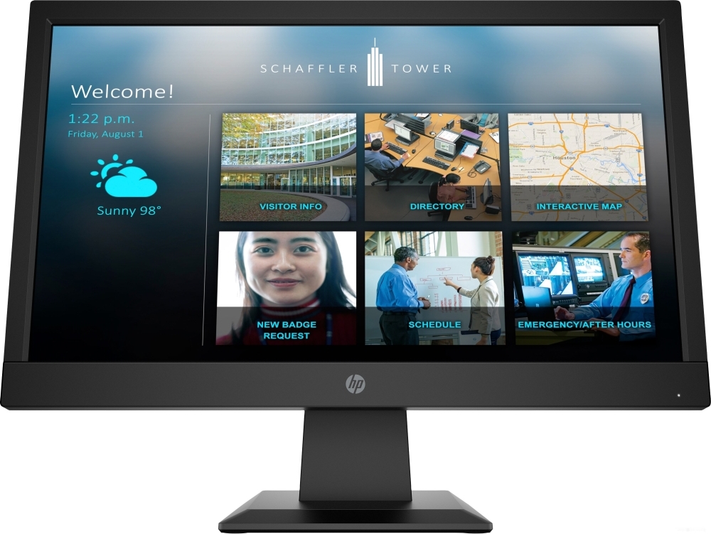 18.5 ", 16:9, 1366x768, TFT TN, 60 Гц, 5 мс, яркость 200 кд/м2, контрастность 600 :1, Flicker-free, видеовходы: HDMI, VGA.