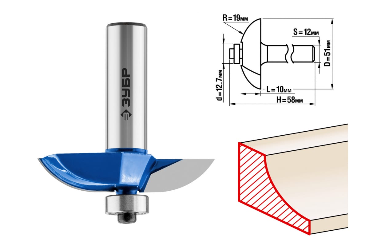 Фреза фигирейная №2 ПРОФЕССИОНАЛ (51х13х58 мм; хвостовик 12 мм) Зубр 28761-51