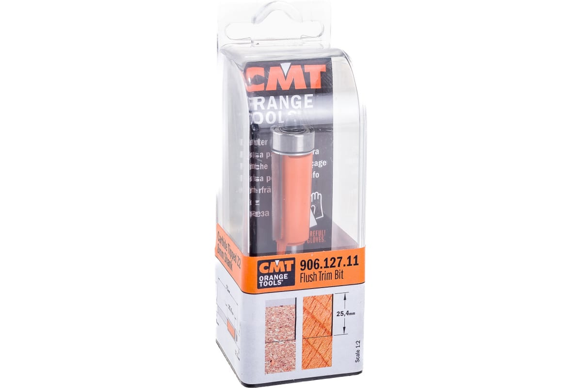 Обгонная фреза СМТ 906.127.11 применяется для работы по мягкой и твердой древесине. Предназначена для операций по снятию свесов, прифуговки ламинированных панелей или фрезерованию по шаблонам с большой точностью. Используется совместно с фрезерными машинами и фрезерными станками. При установке фреза образует прямой угол с опорным столом, что позволяет при фрезеровании получить строго перпендикулярный торец или кромку. Обгонная фреза с прямыми напаянными зубьями HW Z2 изготовлена из твердого сплава.