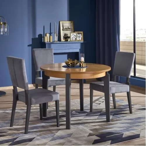 Круглый стол SORBUS понравится тем, кто ценит практичные решения. Мебель изготовлена в Польше, для ее изготовления использовались такие компоненты, как МДФ и натуральный дубовый шпон. Ножки стола изготовлены из массива бука. Мебель отличается модной цветовой гаммой, ведь столешница выполнена в цвете медового дуба, а ножки имеют оттенок графита.