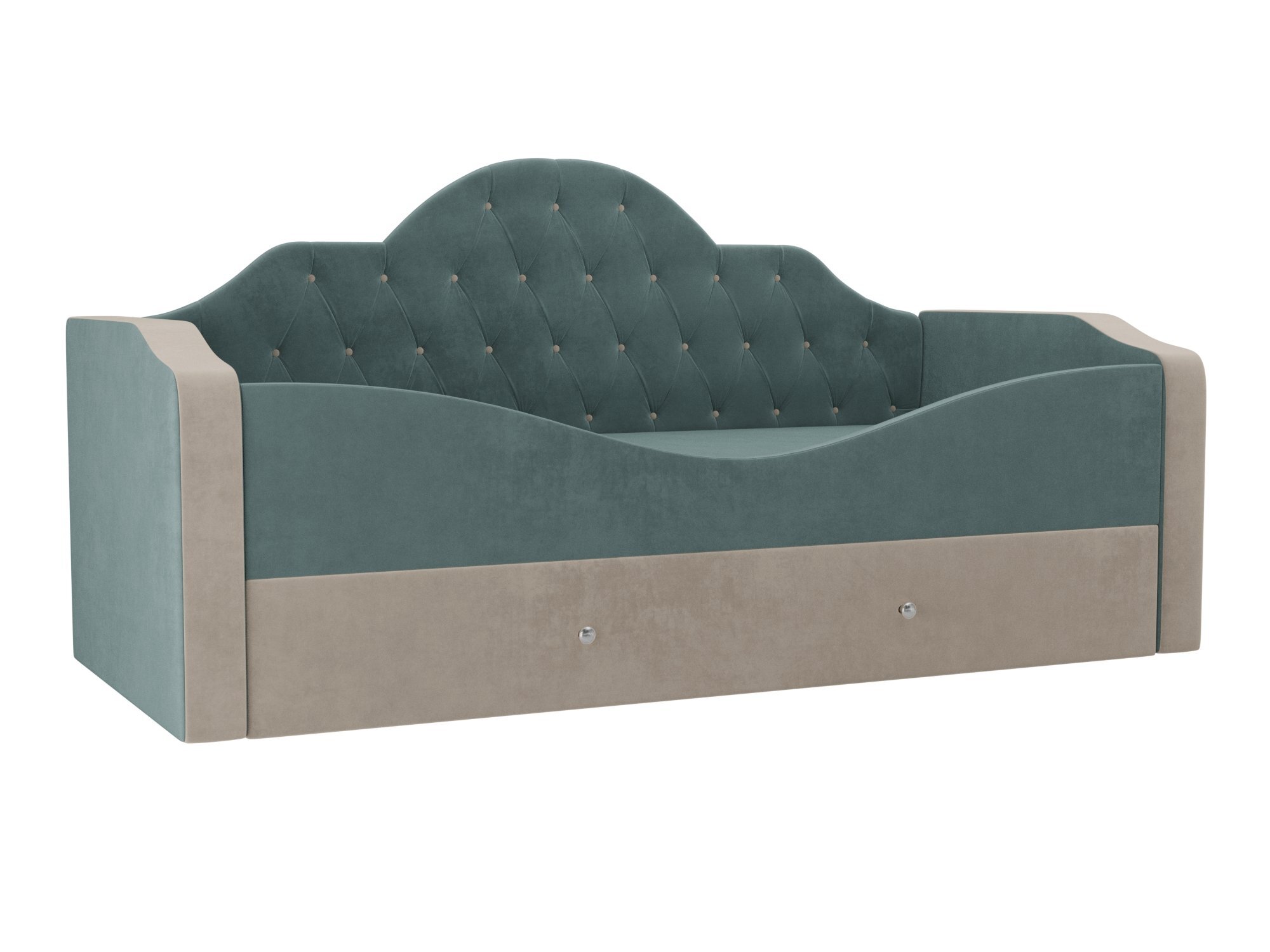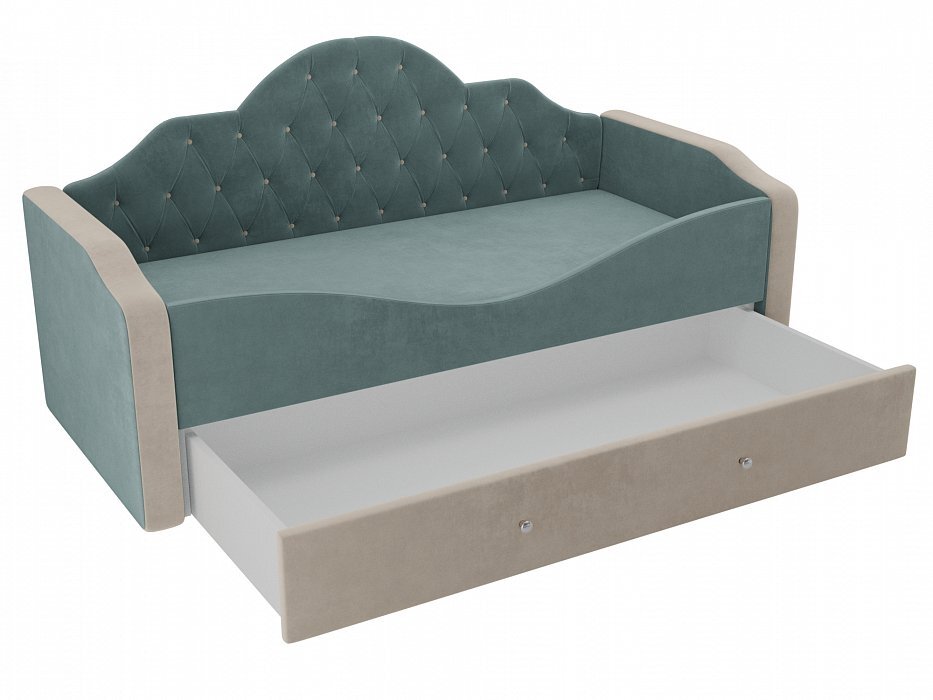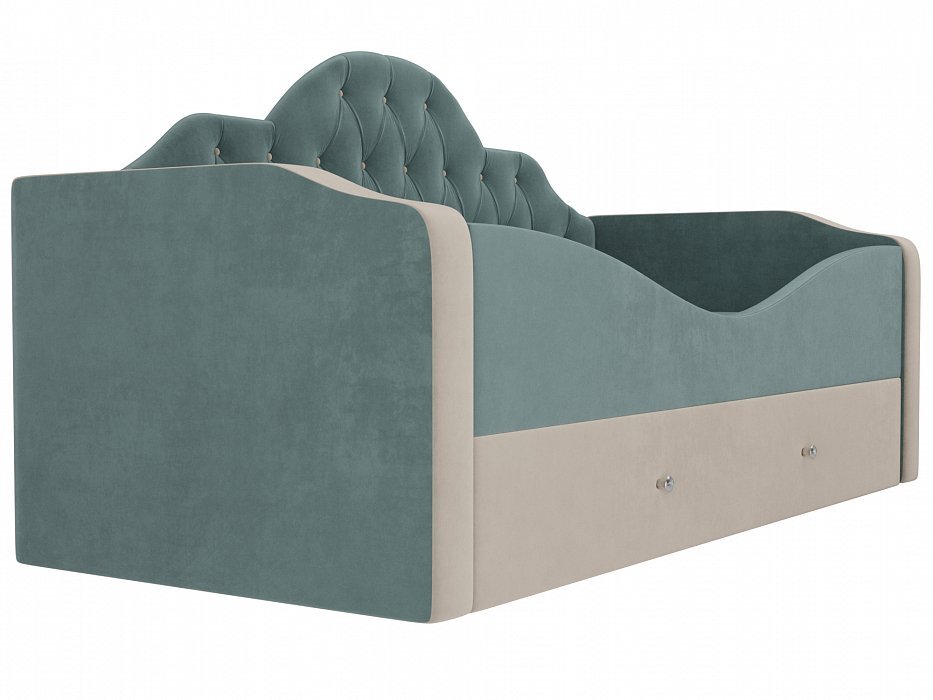Детская кровать Скаут Велюр Бирюзовый\Бежевый