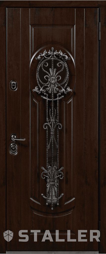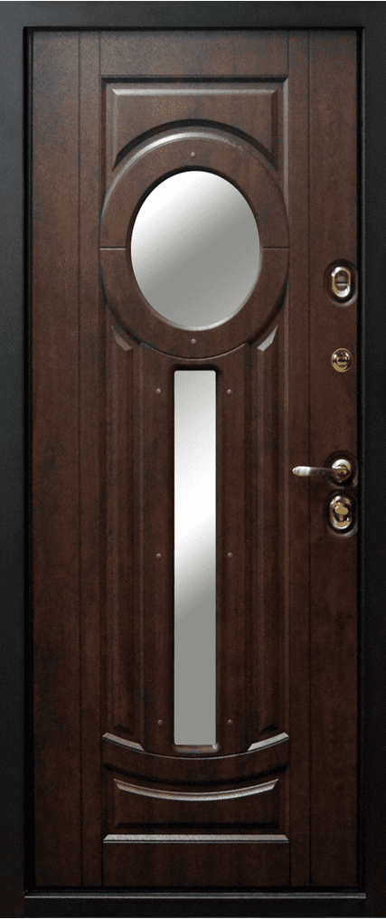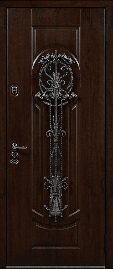 Изящная кованая вставка с вензельными узорами на внешнем полотне и зеркальные вставки на внутреннем полотне создают уличной металлической двери «Сицилия» невероятный величественный вид, изящно подчеркивающий образ вашего дома в целом. Полотно с трехконтурным уплотнением усилено в области замков и петель обеспечивает наибольшую защиту от механических нагрузок и износа. Уплотняющие контуры на полотне и коробке защитят ваше помещение от сквозняков и проникновения холода.