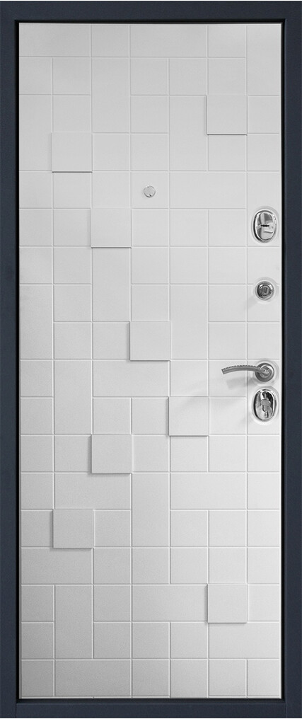 Внешнее МДФ полотно 16 мм обработано качественным экологичным покрытием Vinorit, обладающим антивандальными свойствами и защитой от внешних воздействий. Наличие регулятора притвора обеспечивает плавное комфортное открывание и закрывание, а также хорошее прилегание полотна к коробу. Высококачественные замочные механизмы защищены врезными броненакладками Apecs, обеспечивающими еще большую защиту от взлома вашей квартиры.