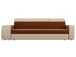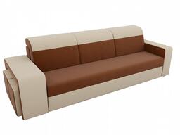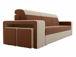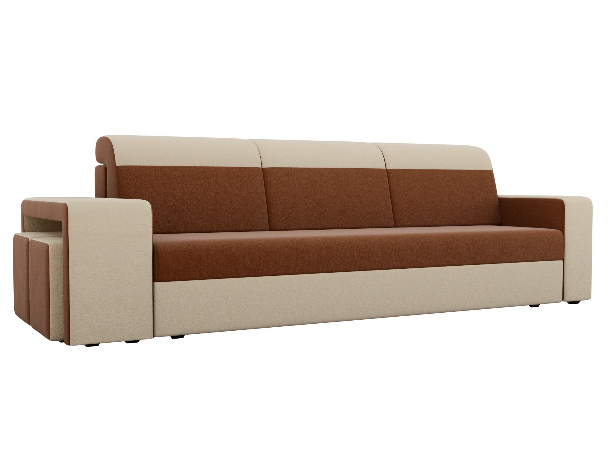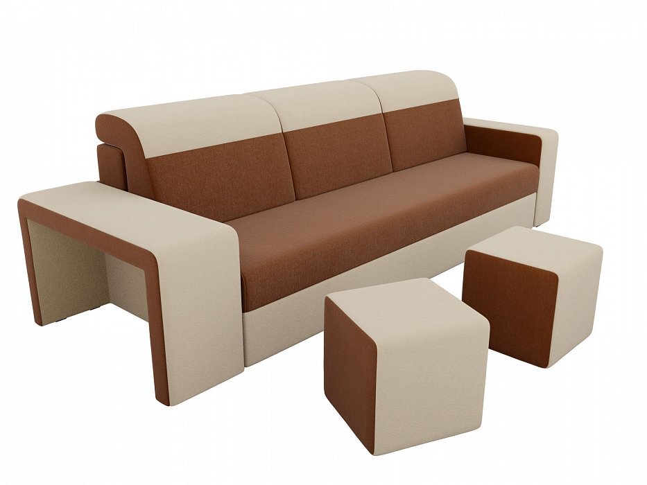 Диван прямой Модена с двумя пуфами Рогожка Коричневый\Бежевый