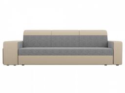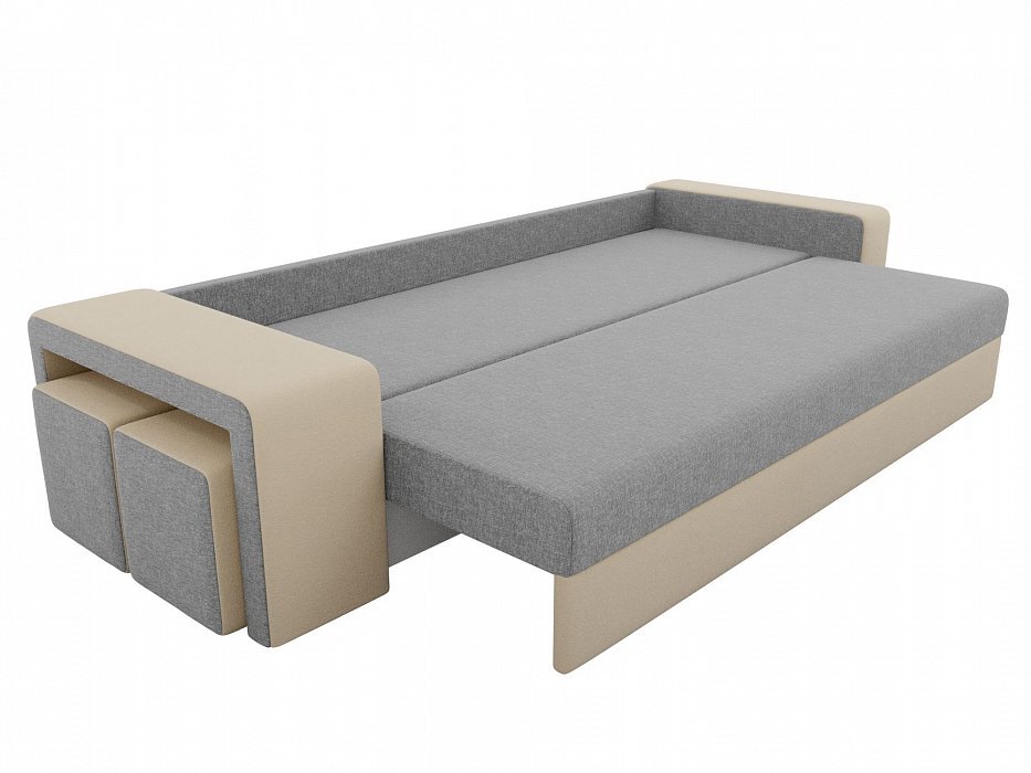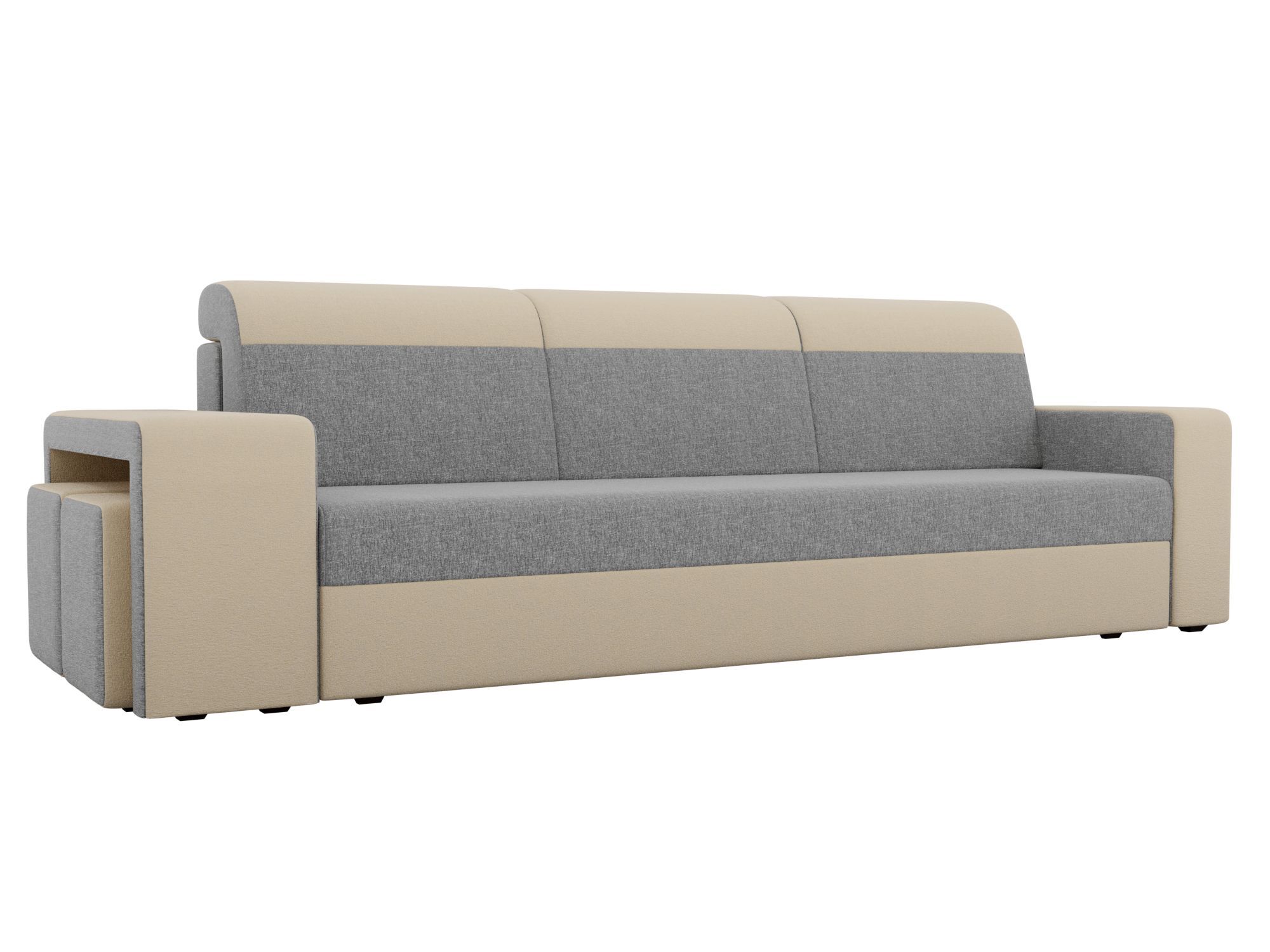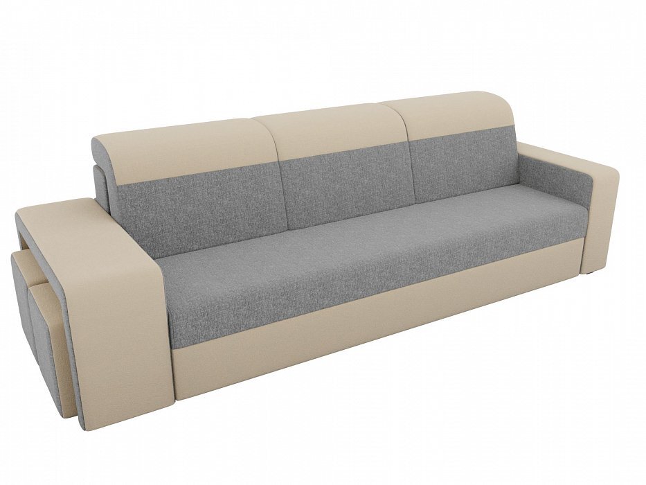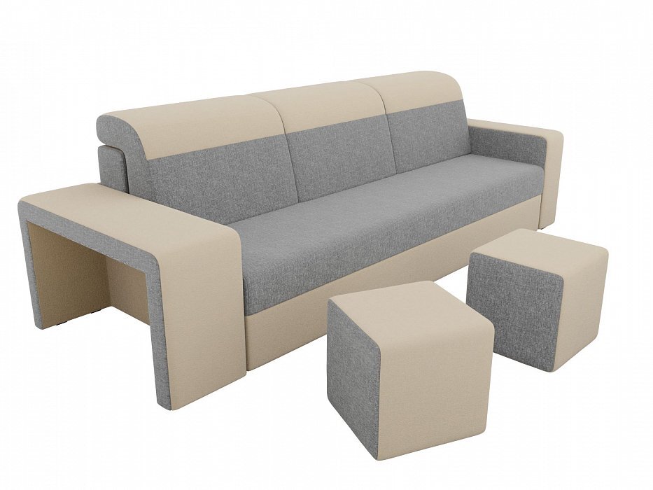 Диван прямой Модена с двумя пуфами Рогожка серый\бежевый