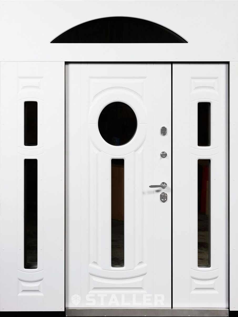 Наружный щит: МДФ 16 мм влагостойкий, рис. О-Ч (окно) Покрытие: Эмаль RAL 9003 белый сигнальный Внутренний щит: МДФ 16 мм влагостойкий, рис. О-Ч (окно) Покрытие: Эмаль RAL 9003 белый сигнальный