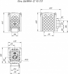 Внешний вид печи для бани с чугунной топкой «Былина» выдержан в древнерусском стиле. В оформлении использованы угловые набойки с массивными заклепками, добротные широкие ленты металла окаймляют вместительную каменку, в орнаменте конвектора узнаются элементы художественной ковки и даже очертания звеньев кольчуги. «Былина» - честная печь! Толщина корпуса чугунной топки составляет настоящие 10 мм! Именно поэтому масса печи без камней — 84 кг. Классическая внешняя каменка с легкостью вместит 55 кг камней.Еще одной отличительной особенностью печи, без сомнений, стала максимально возможная площадь теплообмена за счет большого количества конвекционных ребер чугунной топки. Да и округлая форма самой топки сконструирована так, чтобы прогревать весь объем каменной закладки без застойных «холодных» зон. В результате имеем максимально жесткую и действительно прочную печь. Нагревайте парную быстро, парьтесь по-богатырски! Выверенная конструкция печи позволяет равномерно прогреть не только парную, но и мойку, и комнату отдыха. Печь «Былина» рассчитана на парную объемом до 12 м3. Диаметр дымохода 115 мм. На печь можно установить любые стандартные элементы дымохода. Гарантийный срок 3 года.