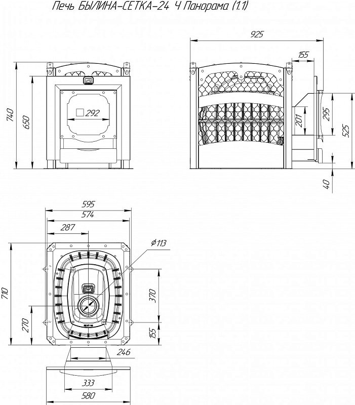 Печь для бани Теплодар Былина-Сетка-24 Ч Панорама (1.1) (без дверцы)
