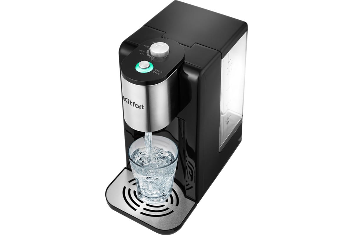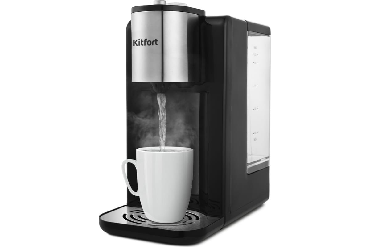 Термопот KITFORT КТ-2502 служит для моментальной подачи воды заданной температуры без предварительного подогрева и ожидания. Подогрев осуществляется проточно, подача воды начинается в течение примерно 5 секунд после нажатия кнопки.