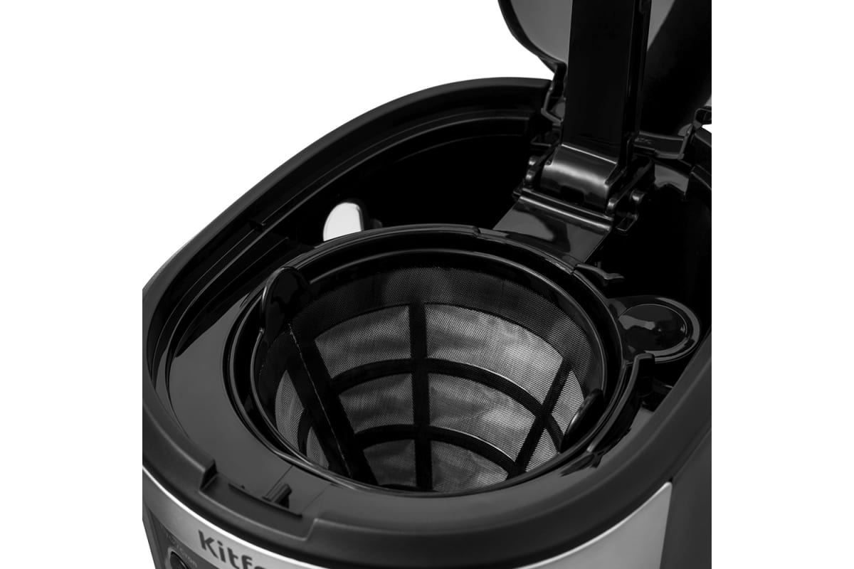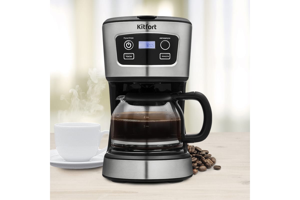 Кофеварка KITFORT КТ-738 поможет приготовить ароматный кофе из молотого кофе. Она компактная и простая в использовании. Кофеварка идеально подойдёт для приготовления кофе в домашних условиях или в офисе. По окончании приготовления кофеварка перейдёт в режим подогрева. Платформа, на которой стоит кофейник с готовым кофе, будет горячей в течение 40 минут, затем кофеварка выключится. Кофеварка оборудована противокапельной системой - затвором, приостанавливающим подачу кофе при вынимании кофейника из кофеварки. Кофеварка оснащена многоразовым нейлоновым фильтром, который удобно мыть после приготовления кофе и использовать снова. Резервуар ёмкостью 0,7 л позволяет за один раз приготовить кофе на 5 чашек ёмкостью 140 мл.