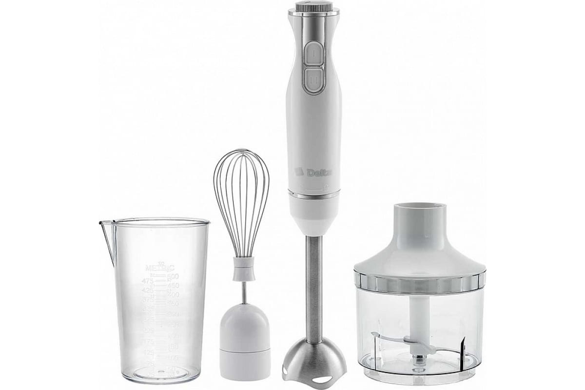 Блендер Delta DL-7049 белый, 600 Вт, регулировка скорости, насадка и нож из нержавеющей стали Р1-00006040