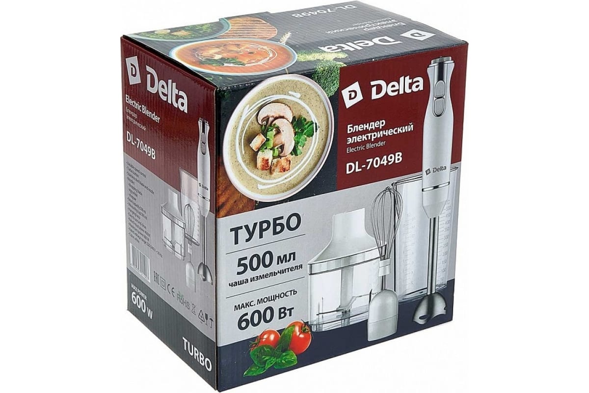Блендер Delta DL-7049 белый, 600 Вт, регулировка скорости, насадка и нож из нержавеющей стали Р1-00006040 представляет собой многофункциональное устройство для смешивания, измельчения и взбивания продуктов и жидкостей в бытовых условиях.