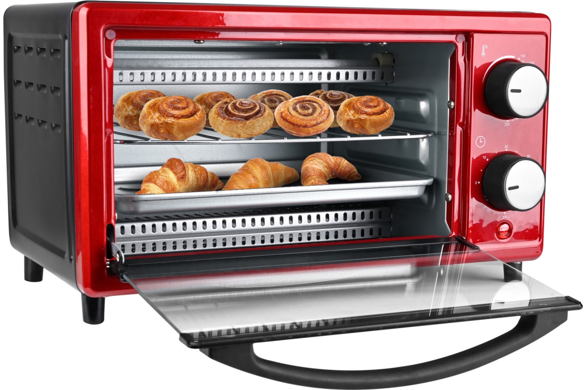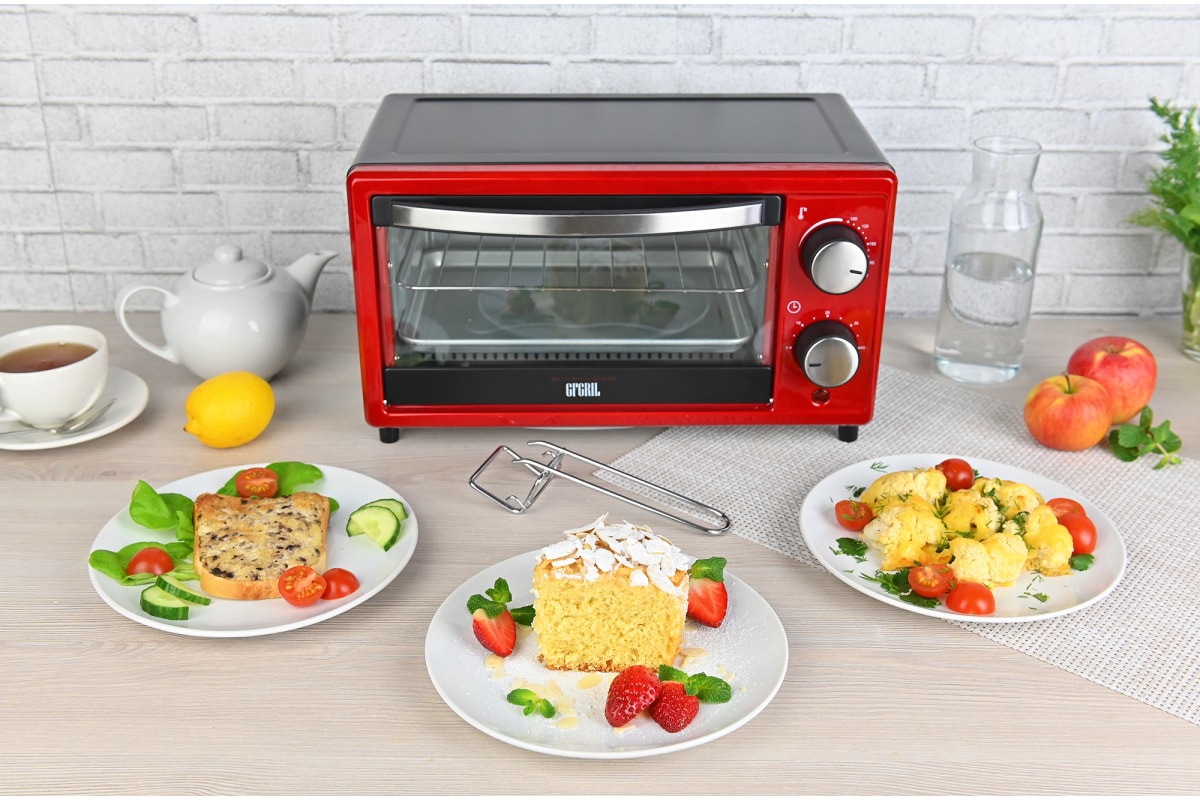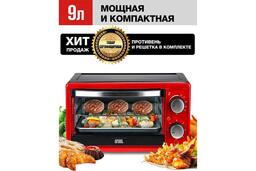 Мини-печь GFGRIL 9 л, 1000 Вт GFO-09 позволяет не только разогреть готовую пищу, но и приготовить как простые, так и сложные блюда. Мини-печь имеет противень и решетку, удобные для запекания основных блюд и выпечки. Два мощных нагревательных элемента быстро создают внутри духовки нужный уровень нагрева, а благодаря регулируемому термостату можно настроить температуру до 250°. Встроенный таймер до 60 мин поможет контролировать процесс приготовления, звуковой сигнал известит о готовности. Высокая скорость нагрева и равномерное распределение жара позволяет быстро разогревать в мини-печи уже готовые блюда. Основное преимущество перед микроволновой печью состоит в том, что при подогревании блюдо не теряет своих полезных свойств, оставаясь таким же сочным и вкусным. Компактные размеры мини-печи помогут сэкономить место на кухне.