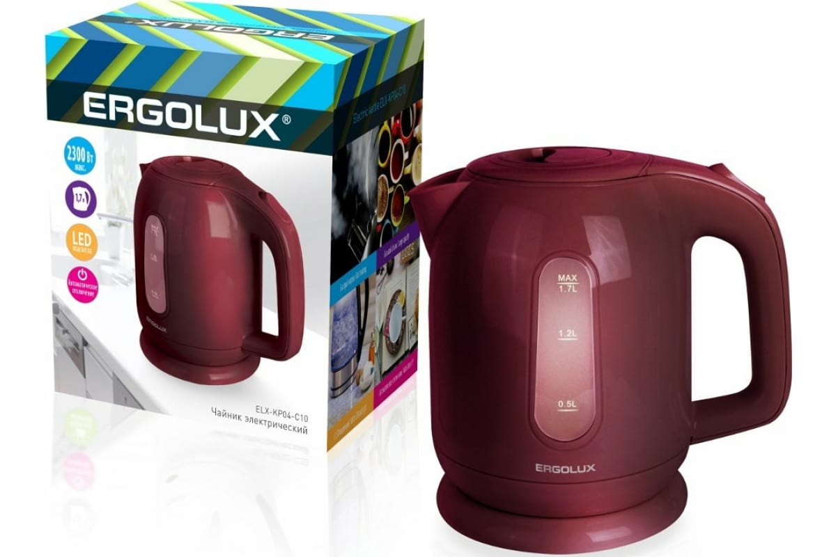Пластиковый чайник Camelion ERGOLUX ELX-KP04-C10 темно коричневый, 1.7 л, 160-250 В, 1500-2300 Вт 14495 предназначен для использования в офисе или дома.