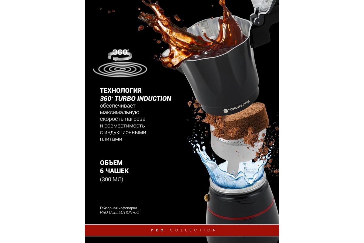 Гейзерная кофеварка Polaris PRO collection-6C 017226