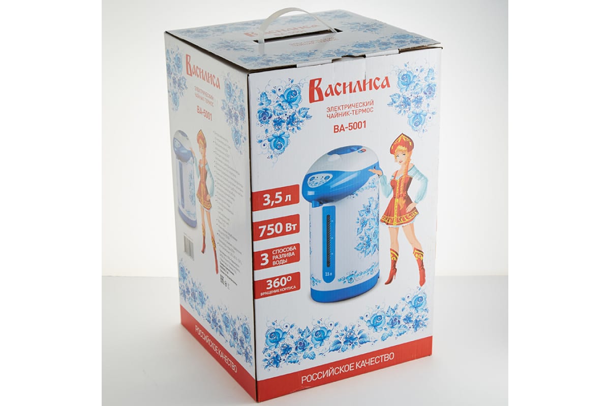 Чайник-термос ВАСИЛИСА ВА-5001 Гжель 3,5 л, 750 Вт, 3 способа подачи воды 6 0R-00001897 предназначен для бытового применения.