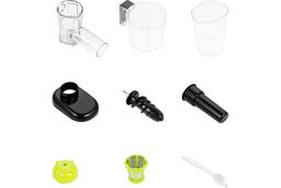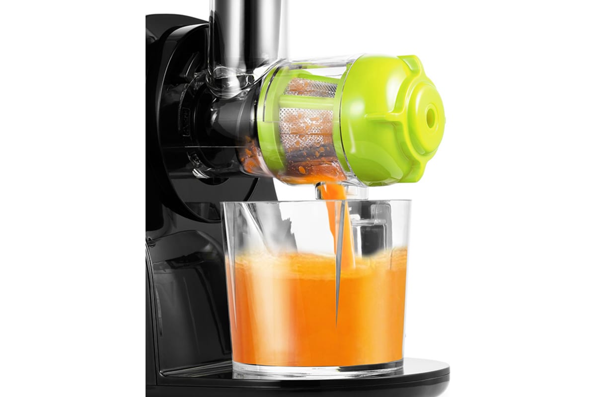 Процесс получения сока не займёт много времени. Продукты подаются в лоток, измельчаются, а затем проталкиваются вперёд. Проходя через фильтр, сок стекает в одно отверстие, жмых - в другое. Весь процесс можно наблюдать через прозрачный отжимной блок.