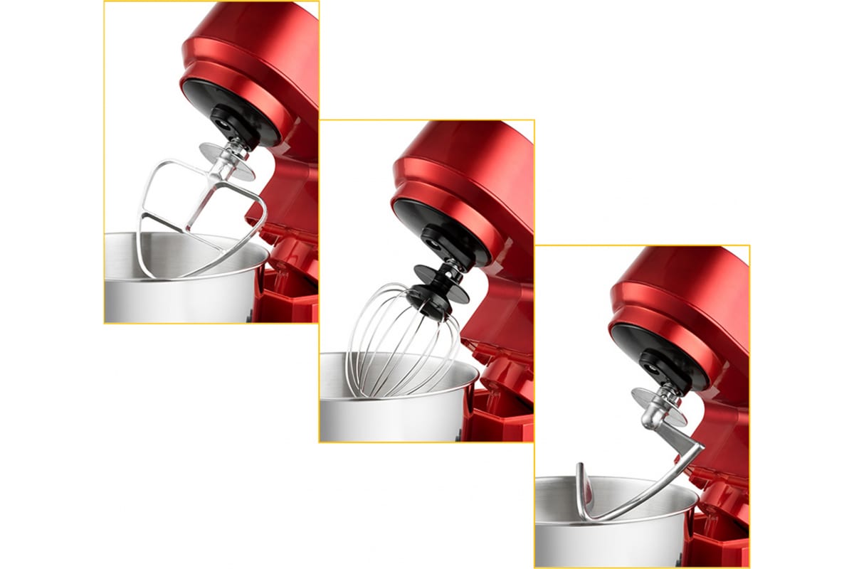 Крюк для теста подходит для замешивания густого теста. Венчик для взбивания - для взбивания яичных белков, сливок, замешивания жидкого теста. Насадка для перемешивания - для смешивания негустых ингредиентов.