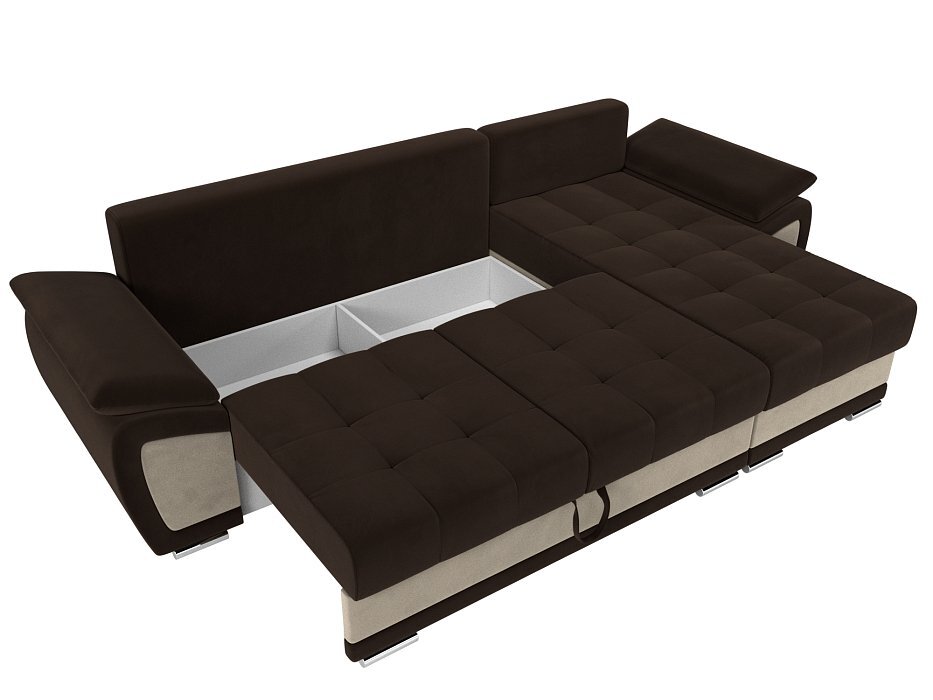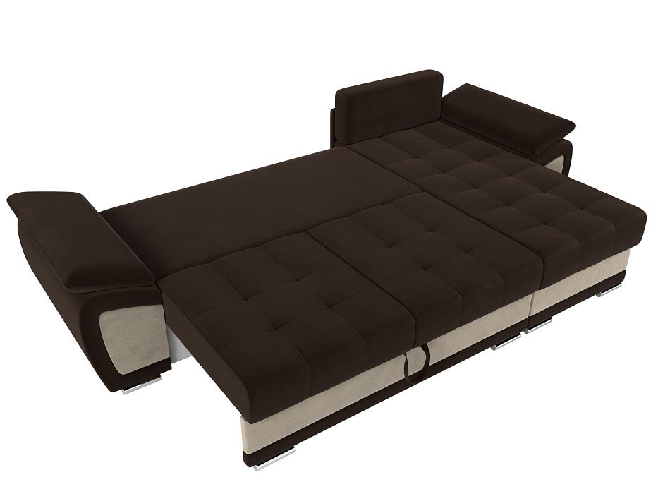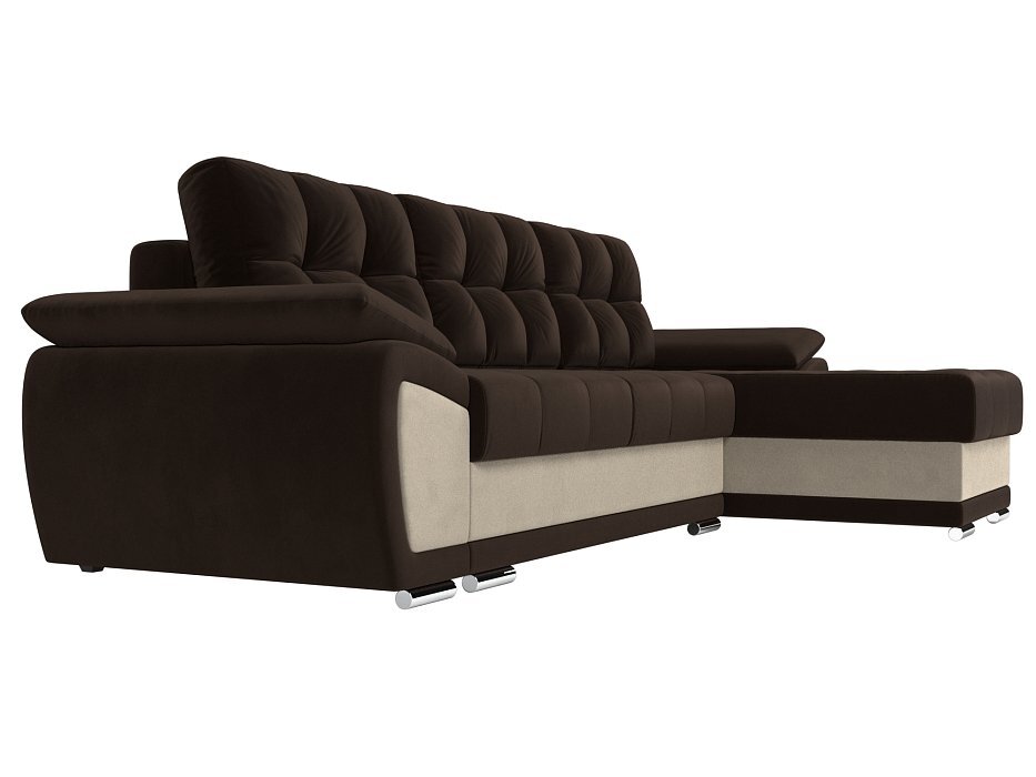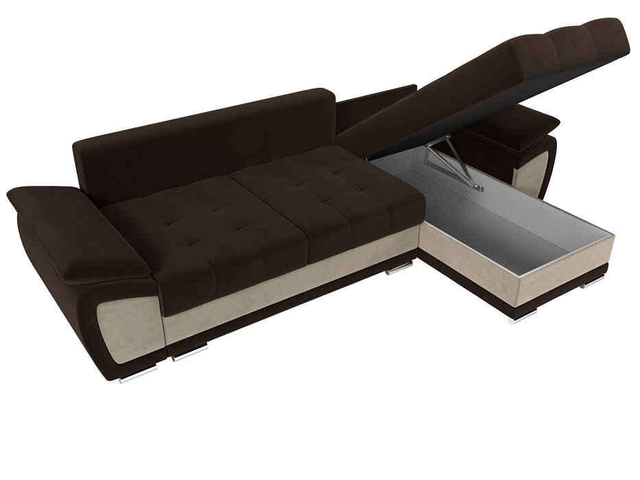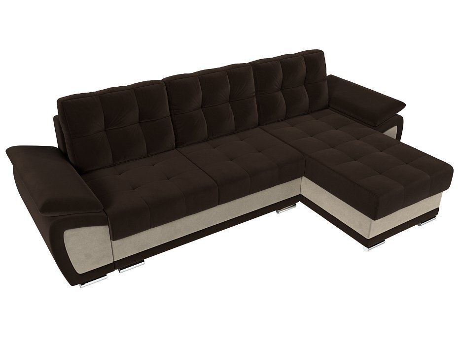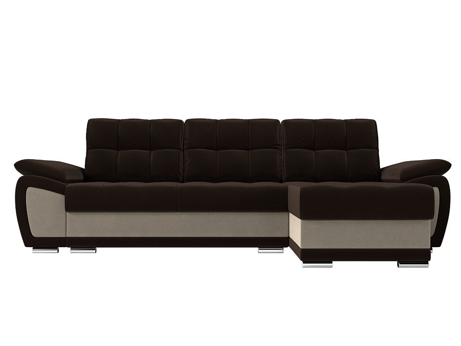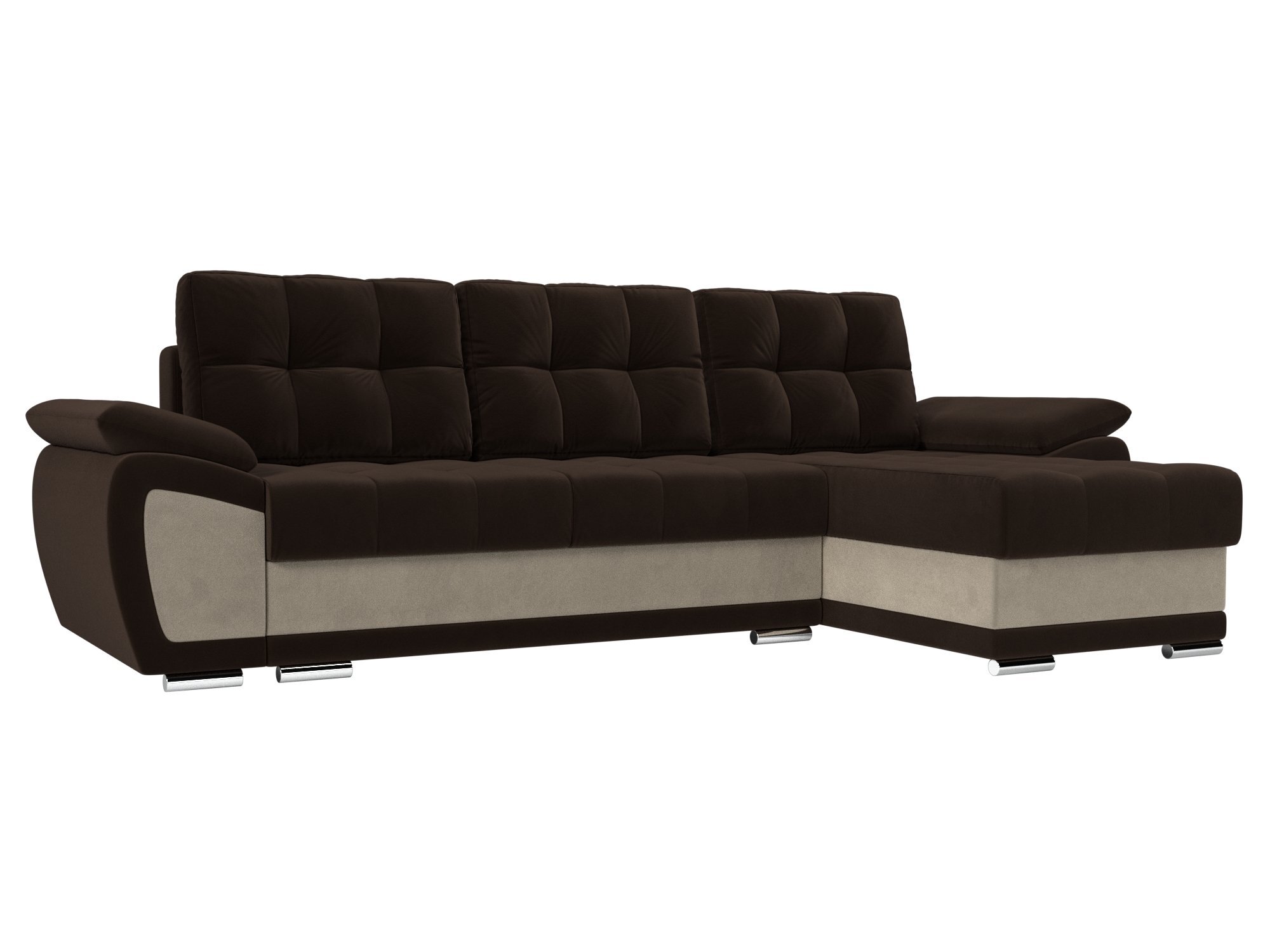 Угловой диван Нэстор Микровельвет Коричневый\Бежевый