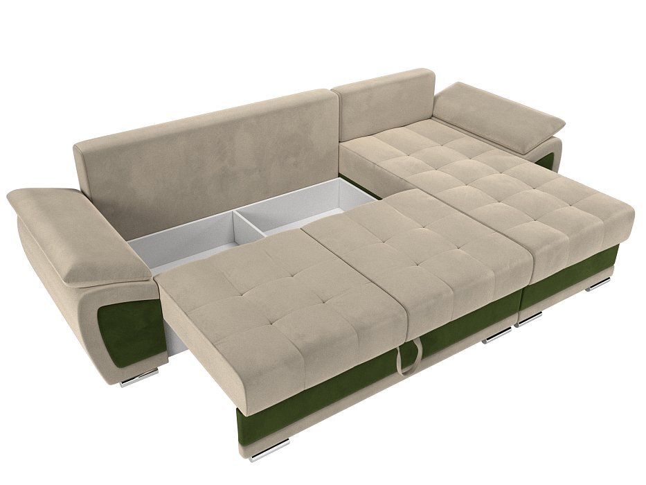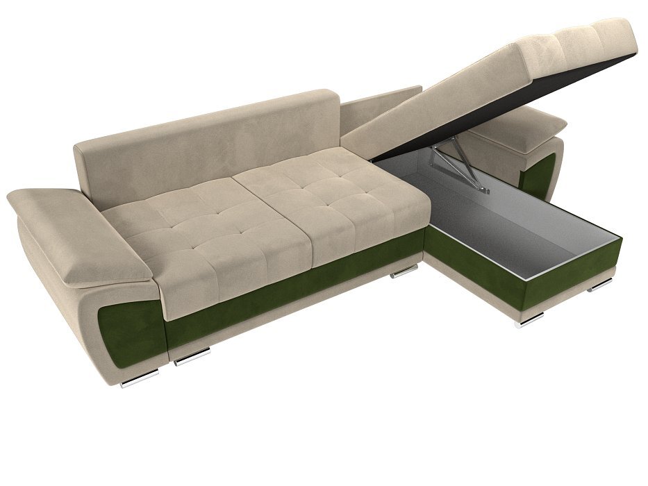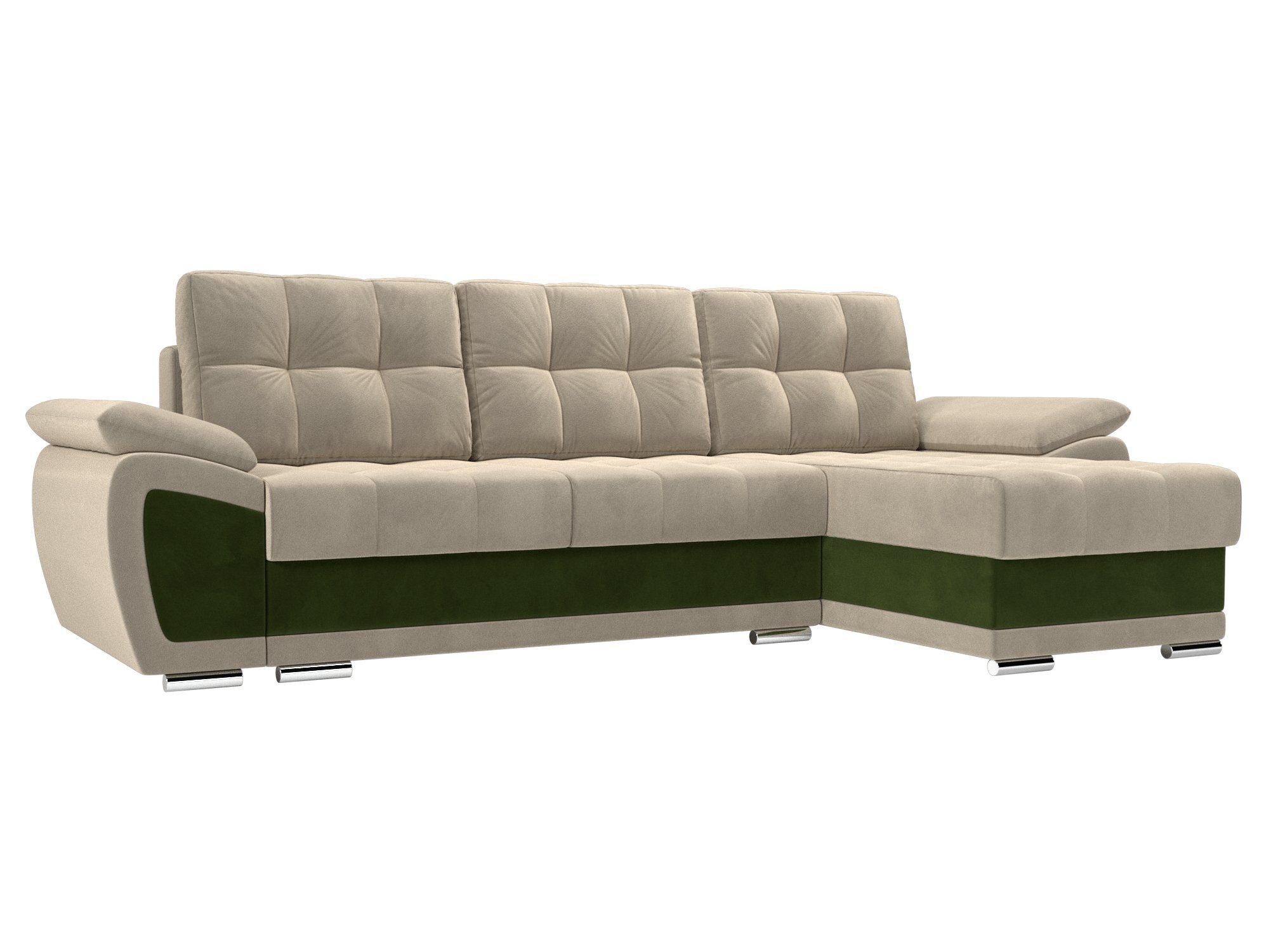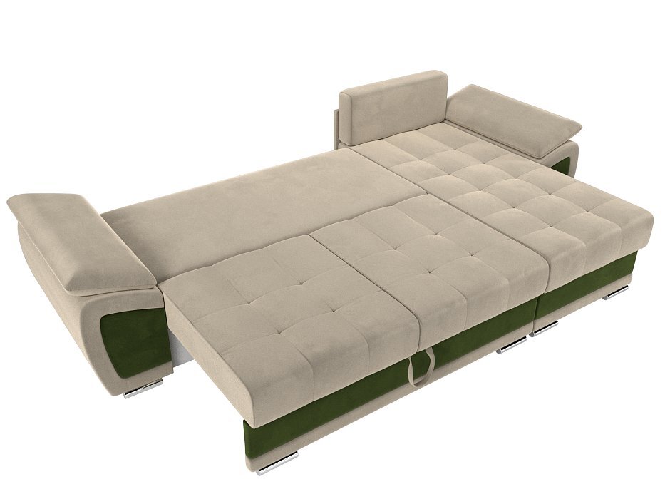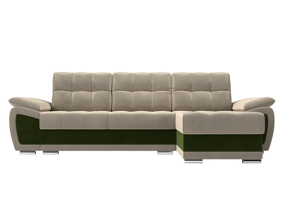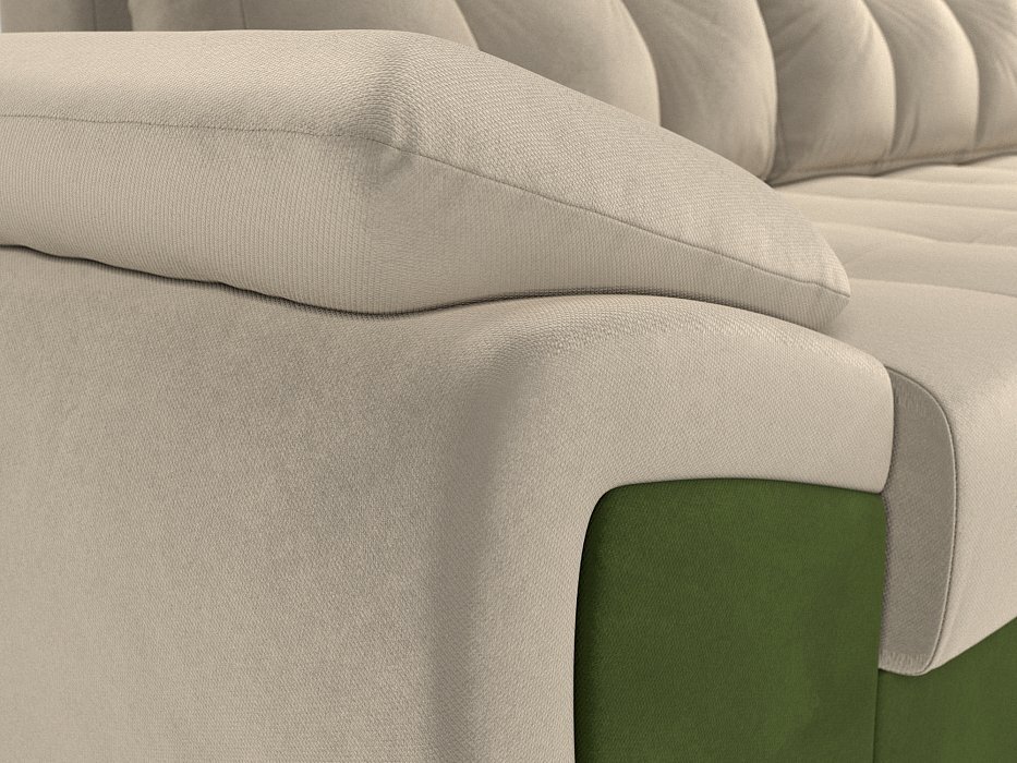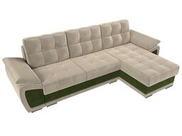 Угловой диван Нэстор Микровельвет бежевый\зеленый