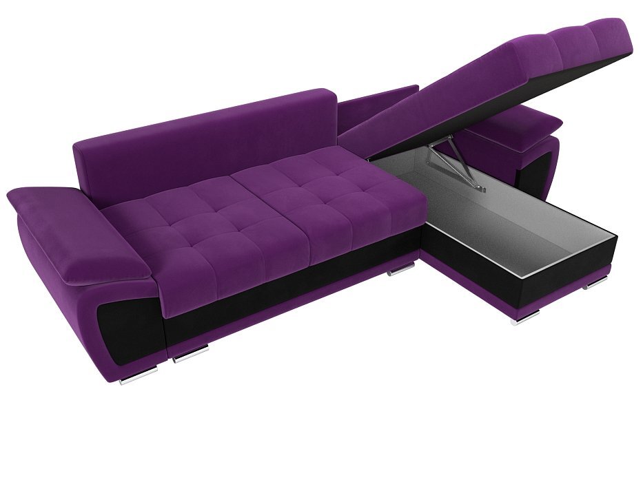 Угловой диван Нэстор Микровельвет Фиолетовый\Черный