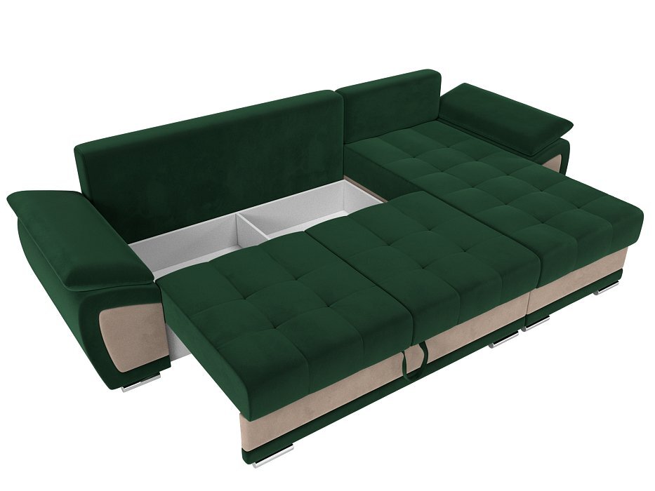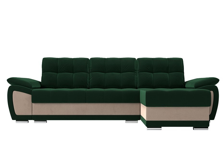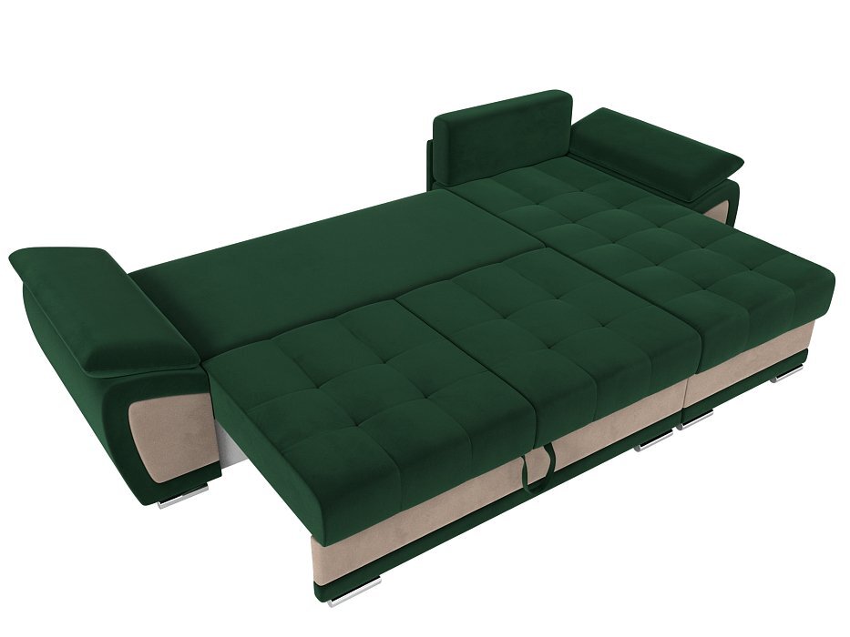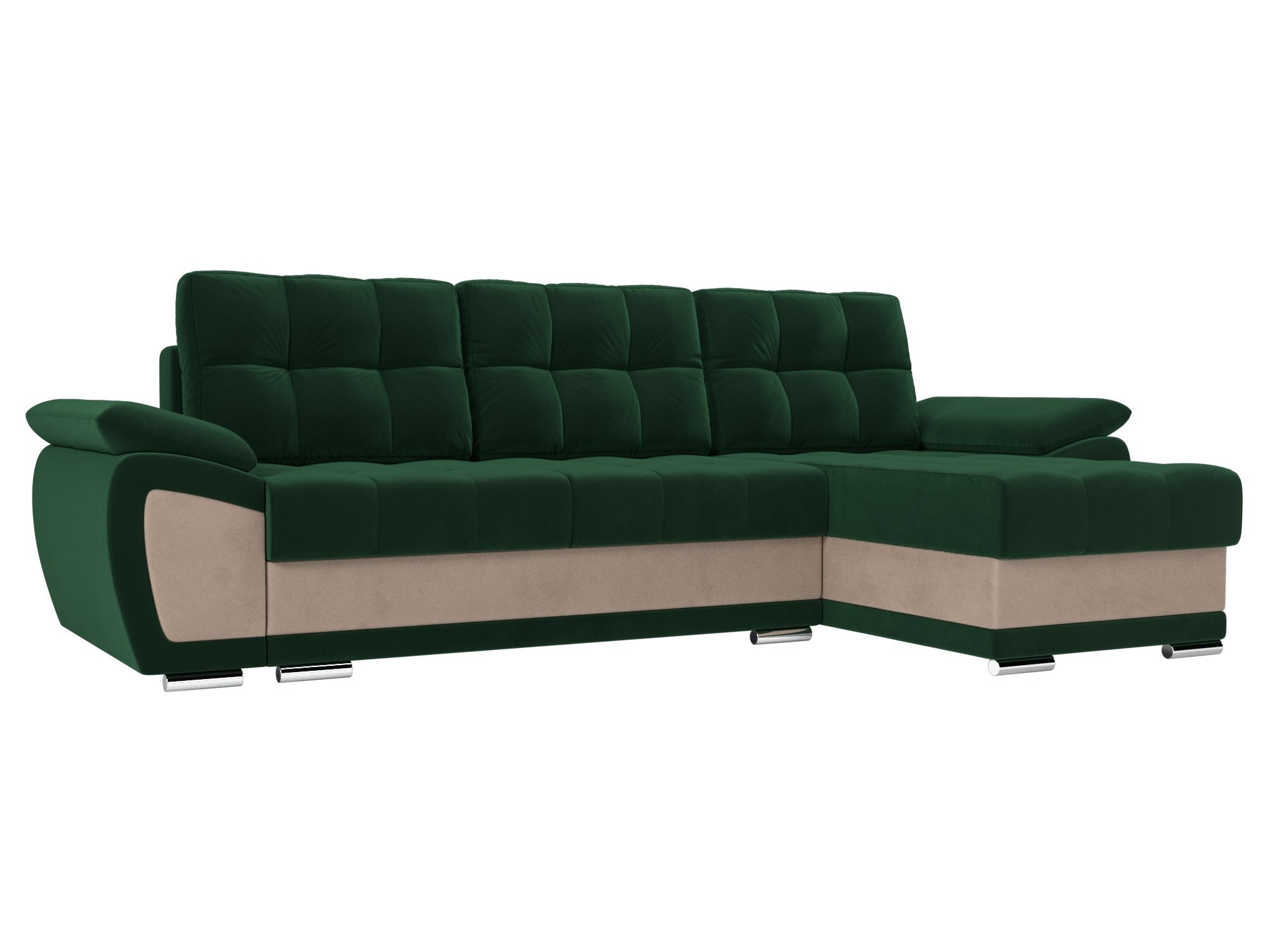Угловой диван Нэстор Велюр Зеленый\Бежевый
