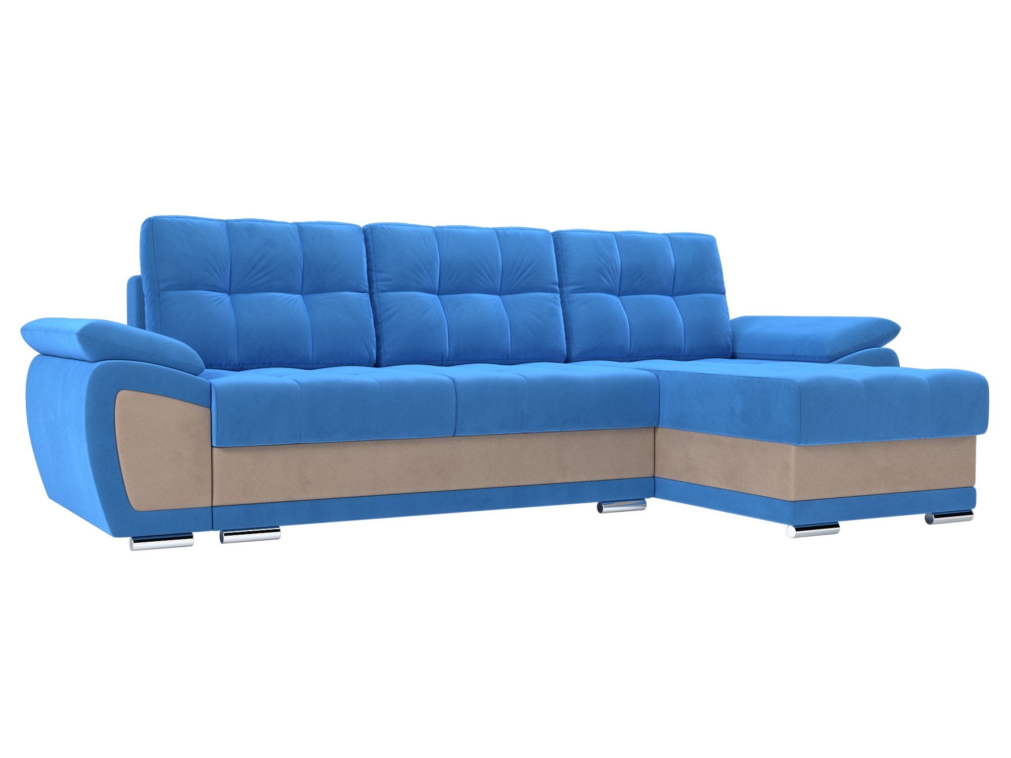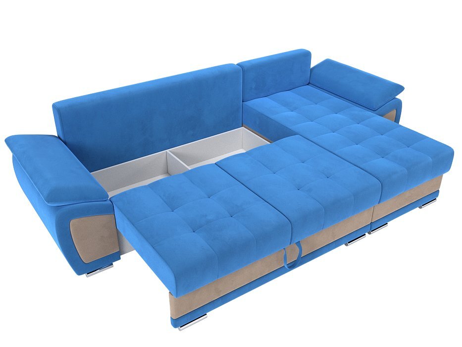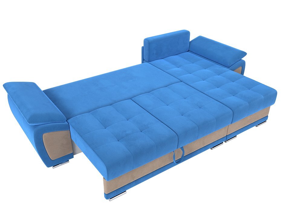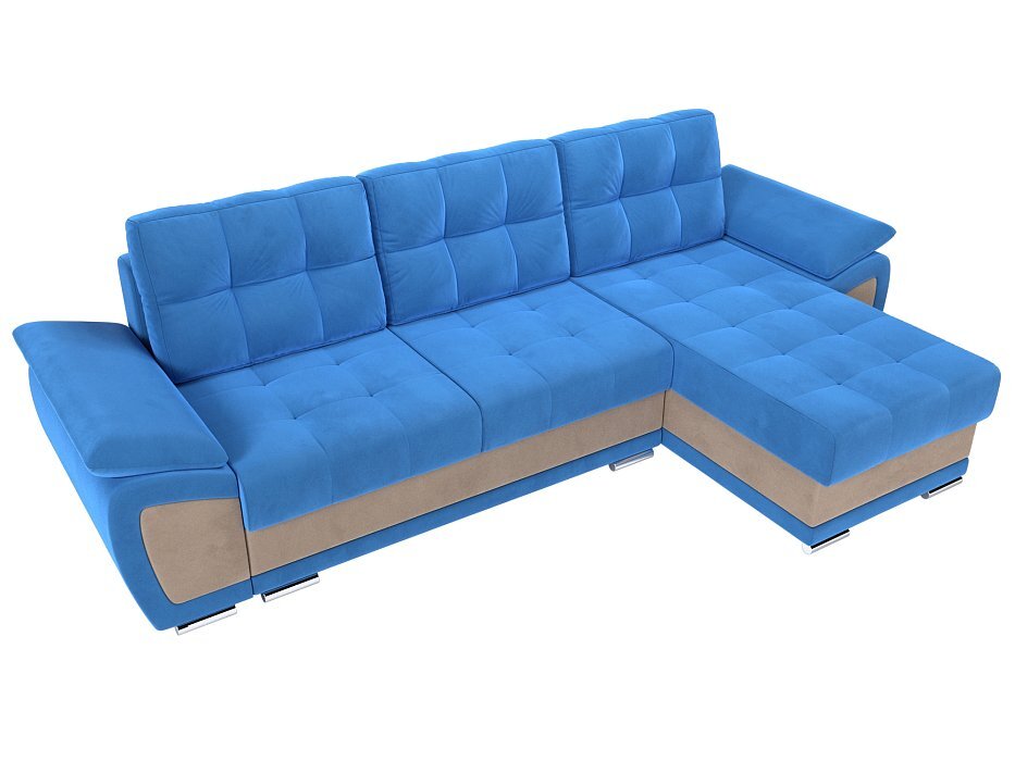 Угловой диван Нэстор Велюр голубой\бежевый