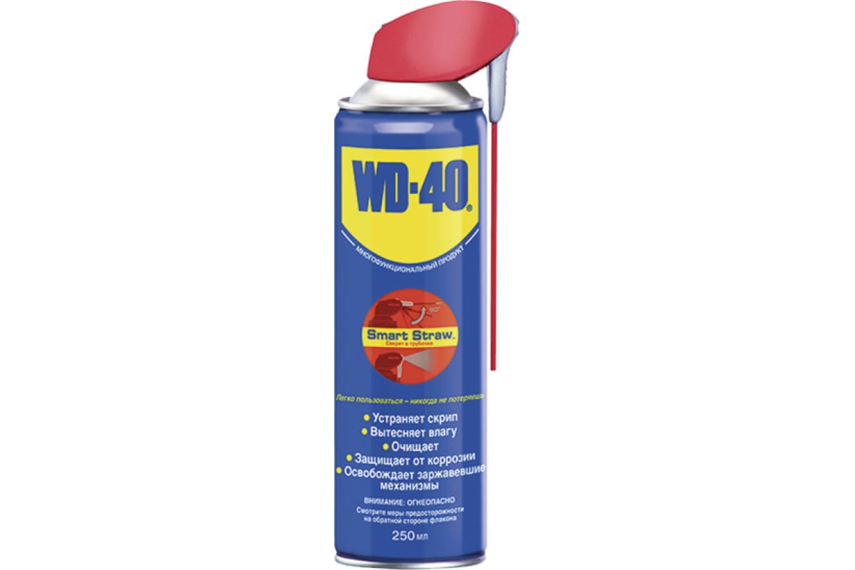 Универсальная смазка РемоКолор WD-40 Секрет в трубочке, 250 мл WD250 устраняет заедания и скрип, вытесняет влагу и образует защитный барьер против сырости. Предохраняет металлические поверхности и образования коррозии даже в самых экстремальных условиях. Смазывает механизмы, детали, не оставляя жирных или липких следов. Проникает в механизмы, освобождает заржавевшие или заевшие части, заклинившие или примерзшие механизмы. Помогает завести влажный двигатель. Очищает, легко удаляет жир, битумные пятна или остатки клея.