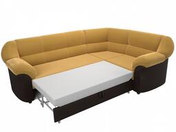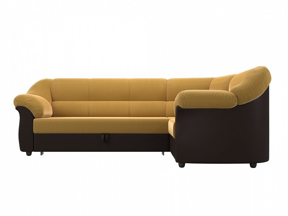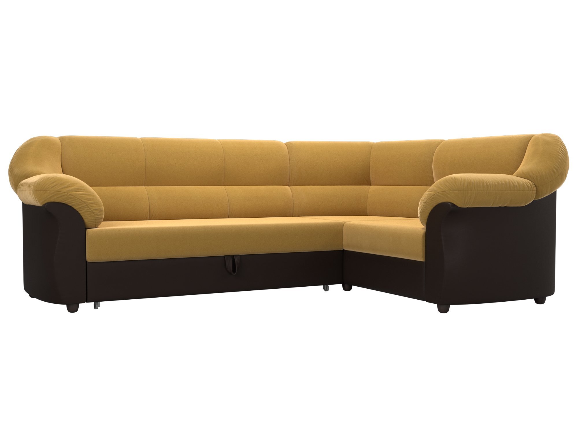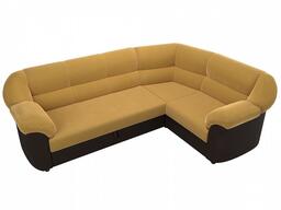 Диван угловой Карнелла Микровельвет\Экокожа Желтый\коричневый
