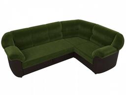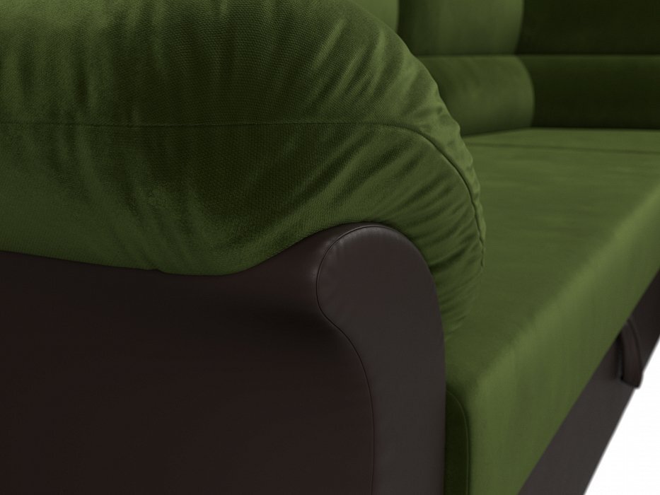 Диван угловой Карнелла Микровельвет\Экокожа зеленый\коричневый