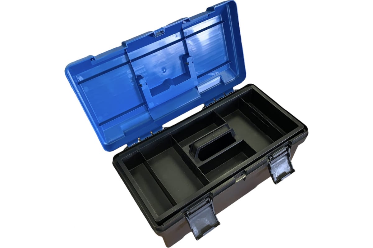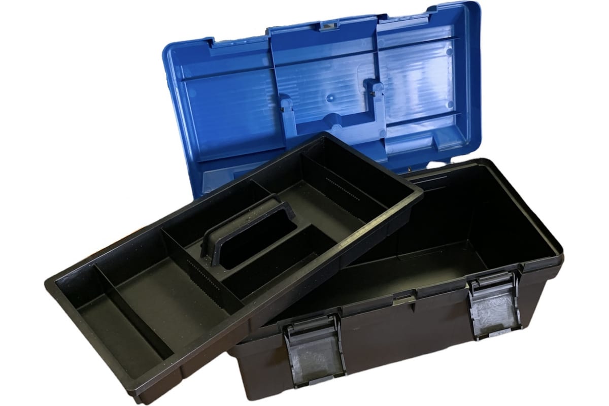 Ящик выполнен из качественного пластика высокой прочности. Материал не содержит в составе вредных для здоровья веществ, а потому безопасен для здоровья. Эргономичная рукоятка позволяет комфортно транспортировать ящик с инструментом.