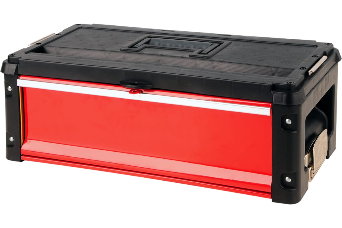 Ящик для инструмента YATO металлопластмассовый YT-09108 представляет собой модульную систему для хранения инструмента. Изделие имеет 1 металлический ящик грузоподъемностью 10 кг и размерами 390x215x130 мм. Ящик установлен на металлических полозьях с шарикоподшипниками.