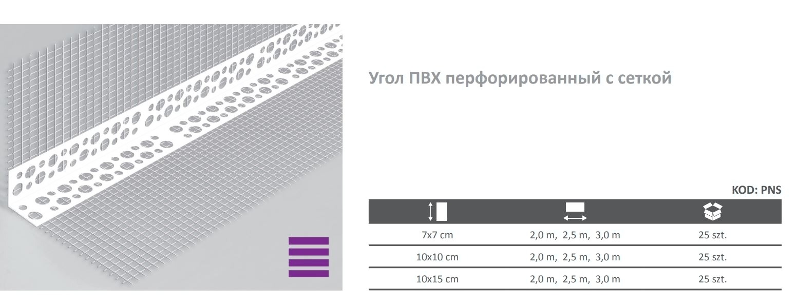 Уголок штукатурный Profigips Перфорированный ПВХ с сеткой 70x70x3000