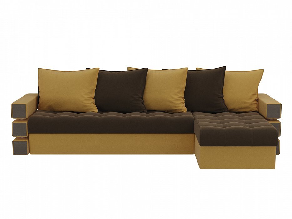 Угловой диван Венеция Микровельвет Коричневый\Желтый