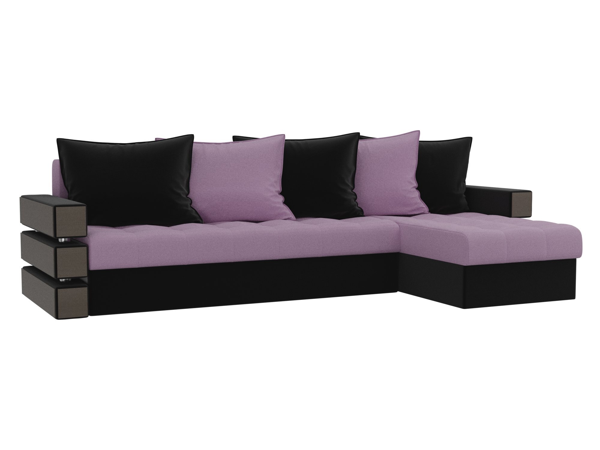 Угловой диван Венеция Микровельвет Сиреневый\Черный