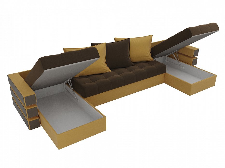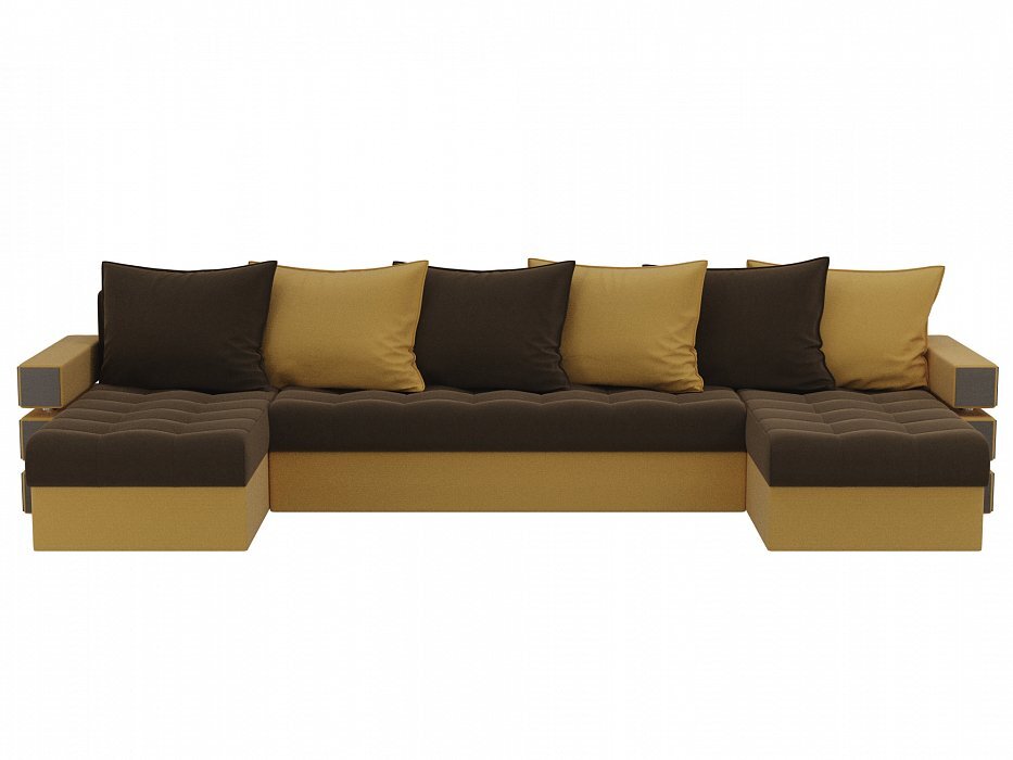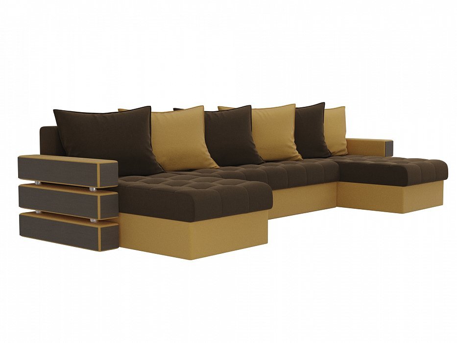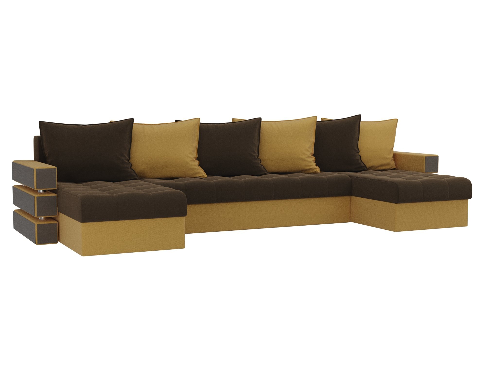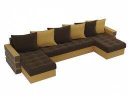П-образный диван Венеция Микровельвет Коричневый\Желтый