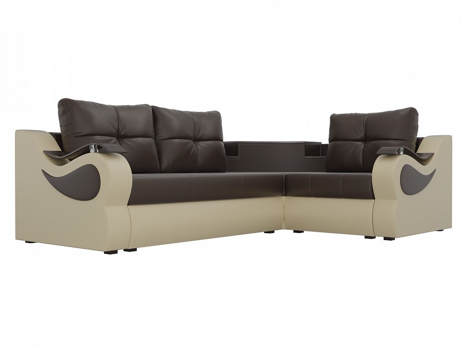 Угловой диван Митчелл Экокожа Коричневый\Бежевый