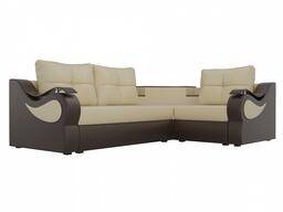 Угловой диван Митчелл Экокожа бежевый\коричневый