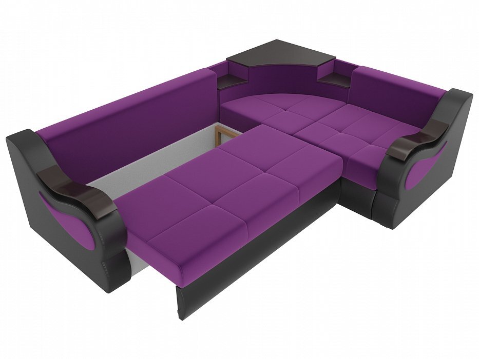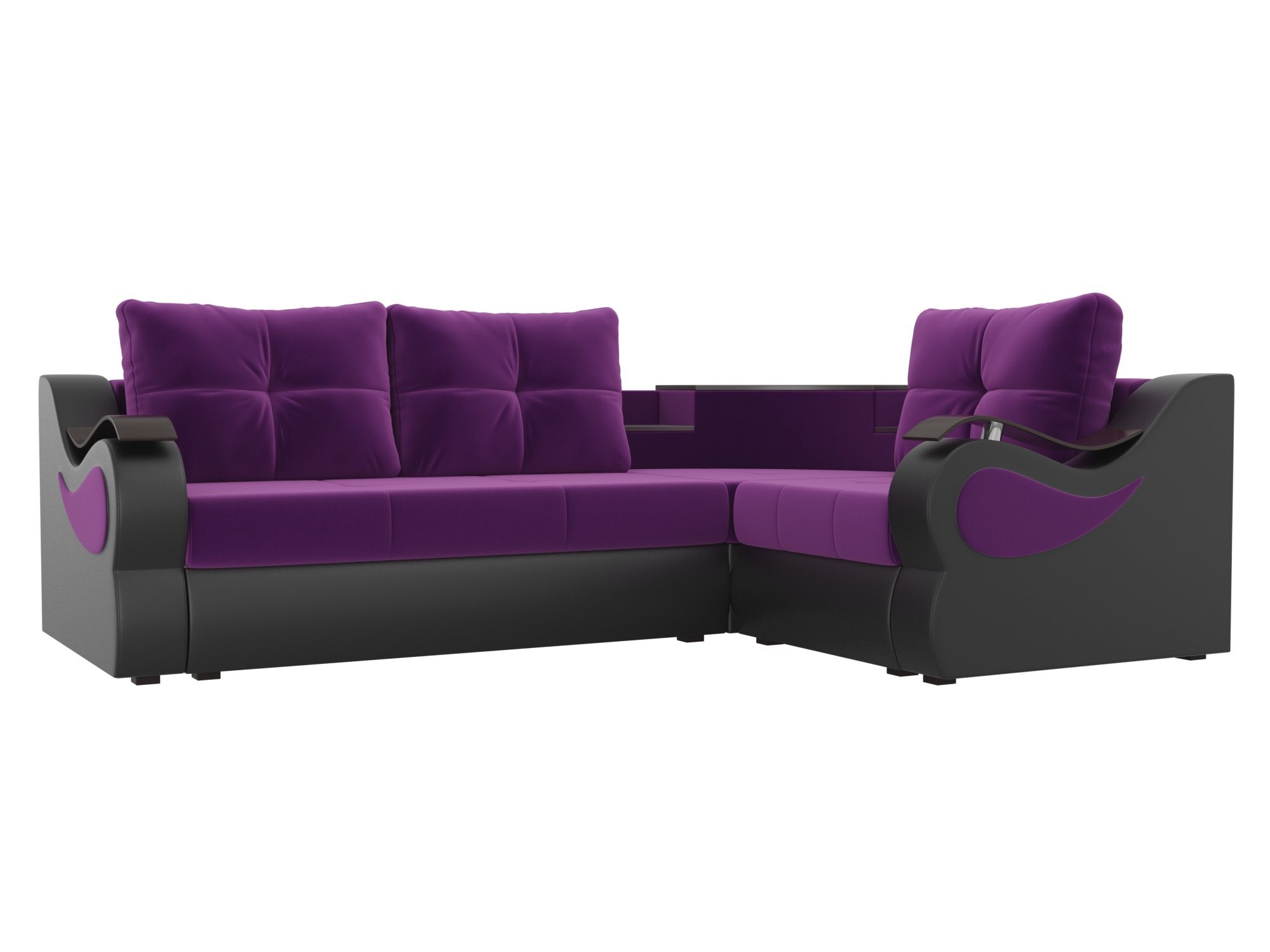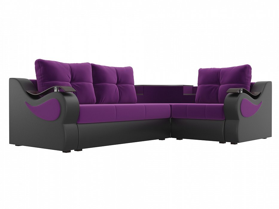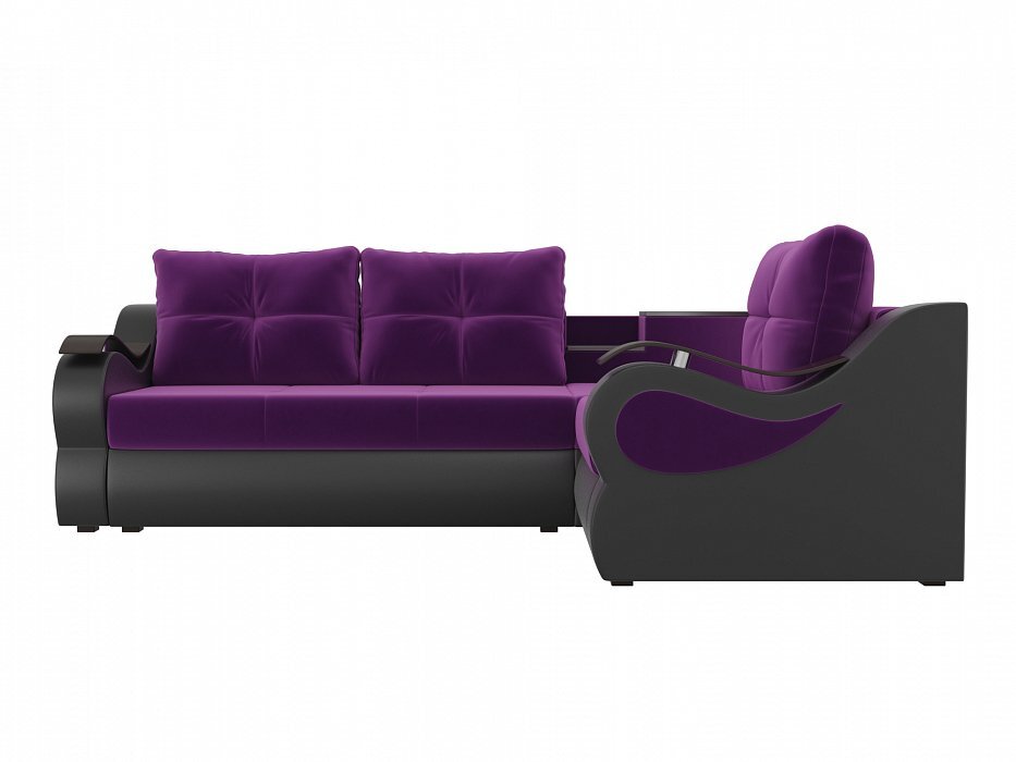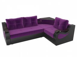 Угловой диван Митчелл Микровельвет\Экокожа Фиолетовый\Черный