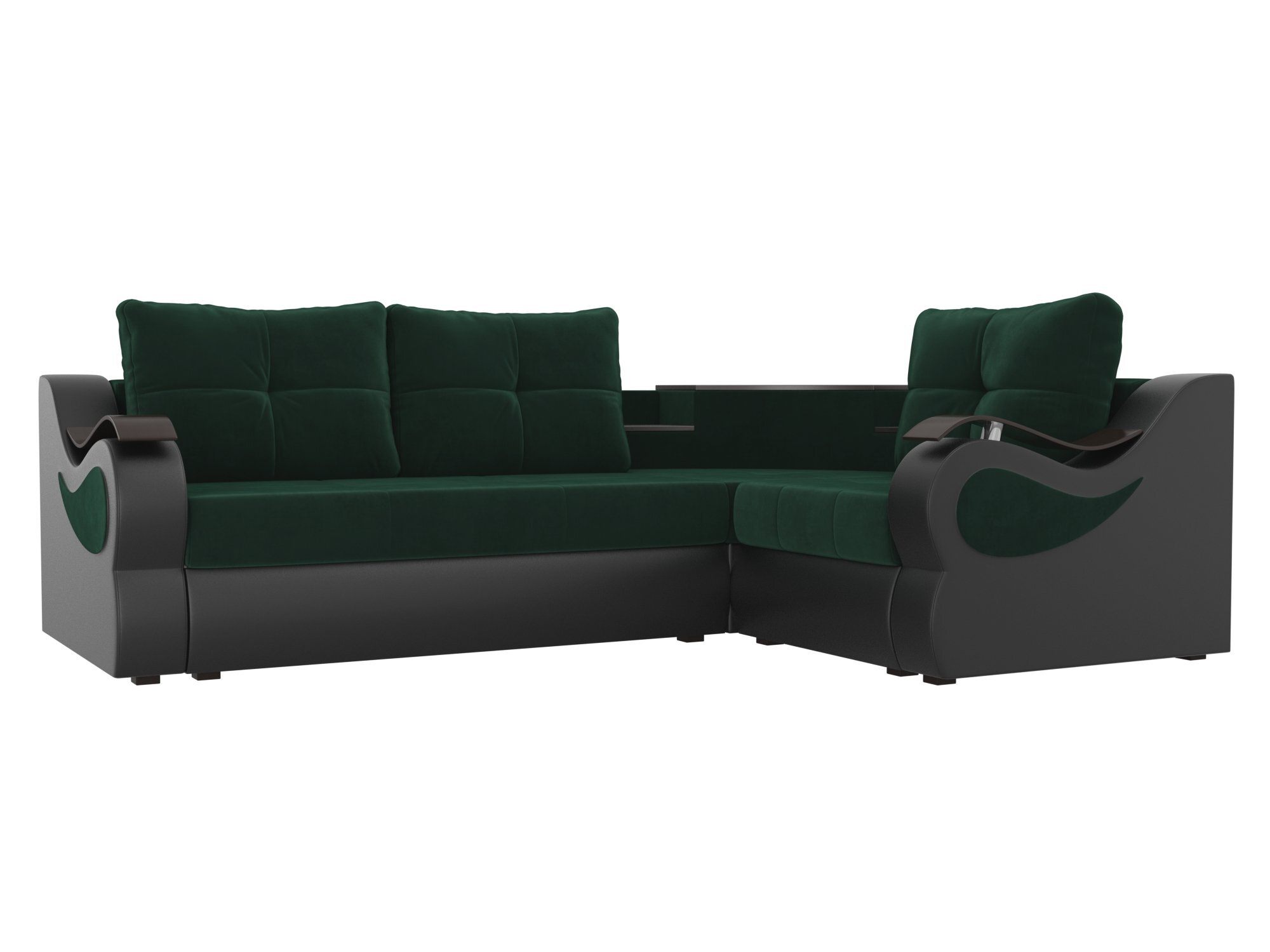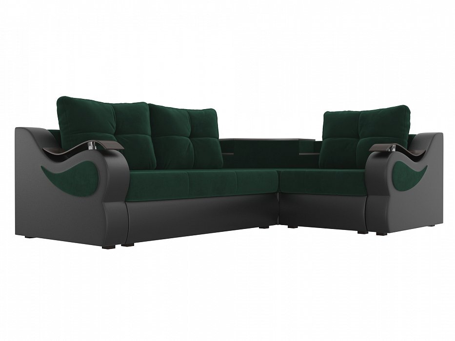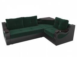 Угловой диван Митчелл Велюр\Экокожа зеленый\коричневый