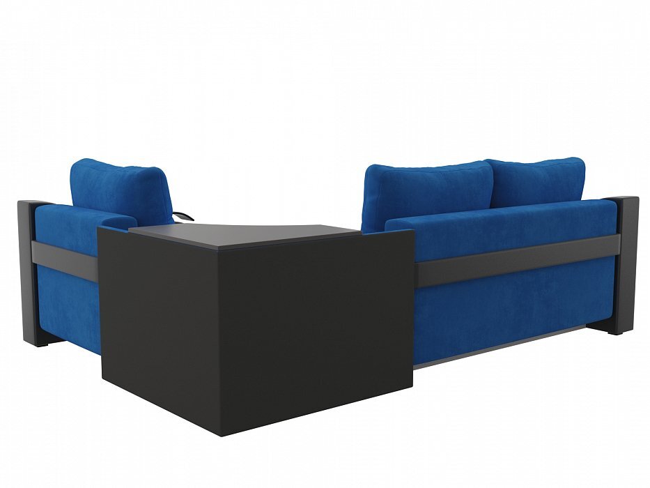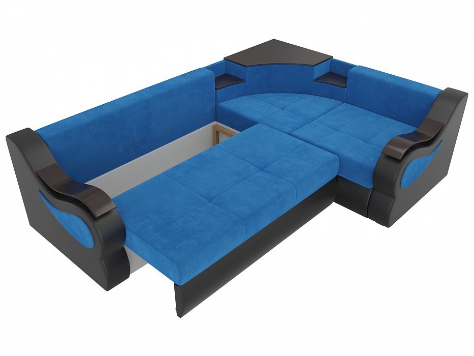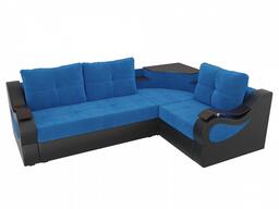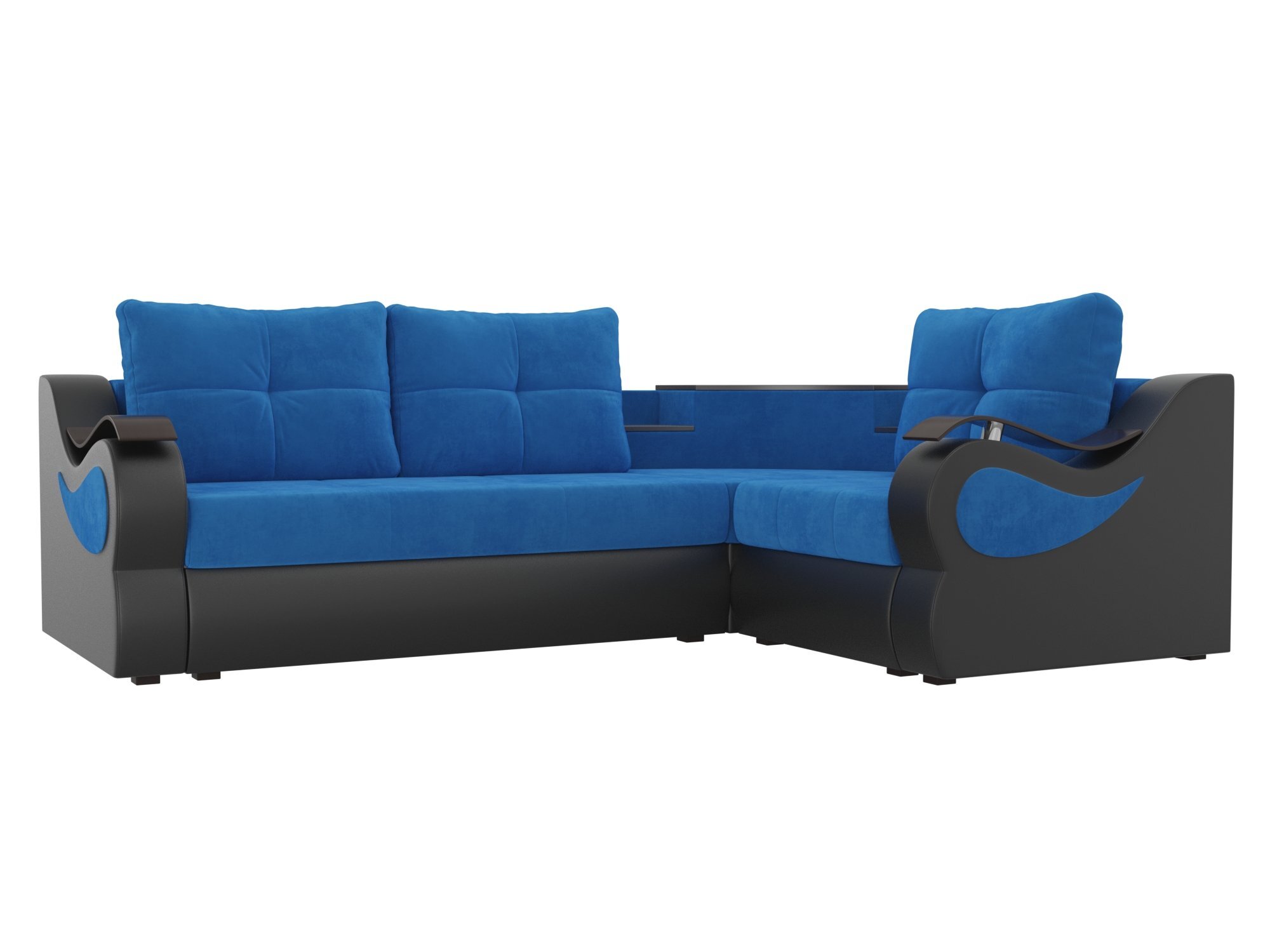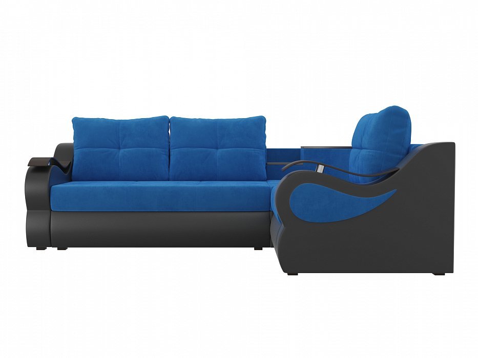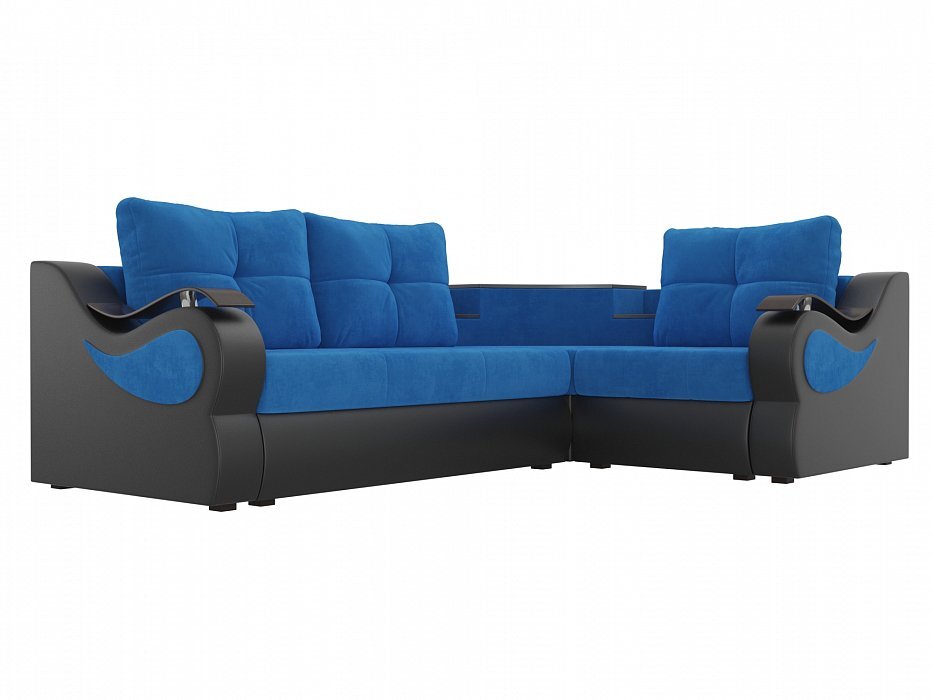 Угловой диван Митчелл Велюр\Экокожа голубой\черный