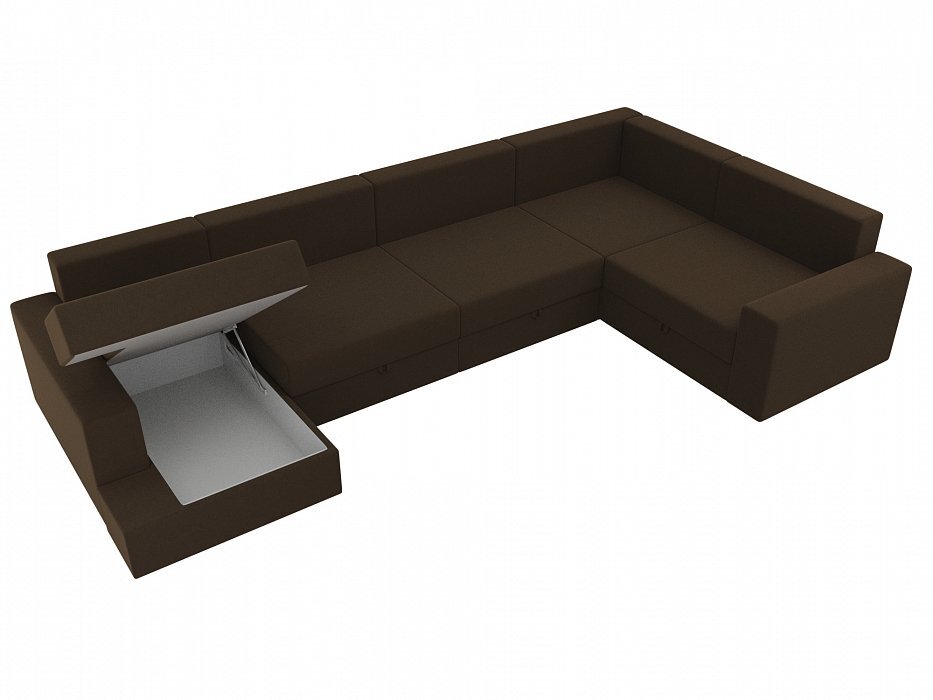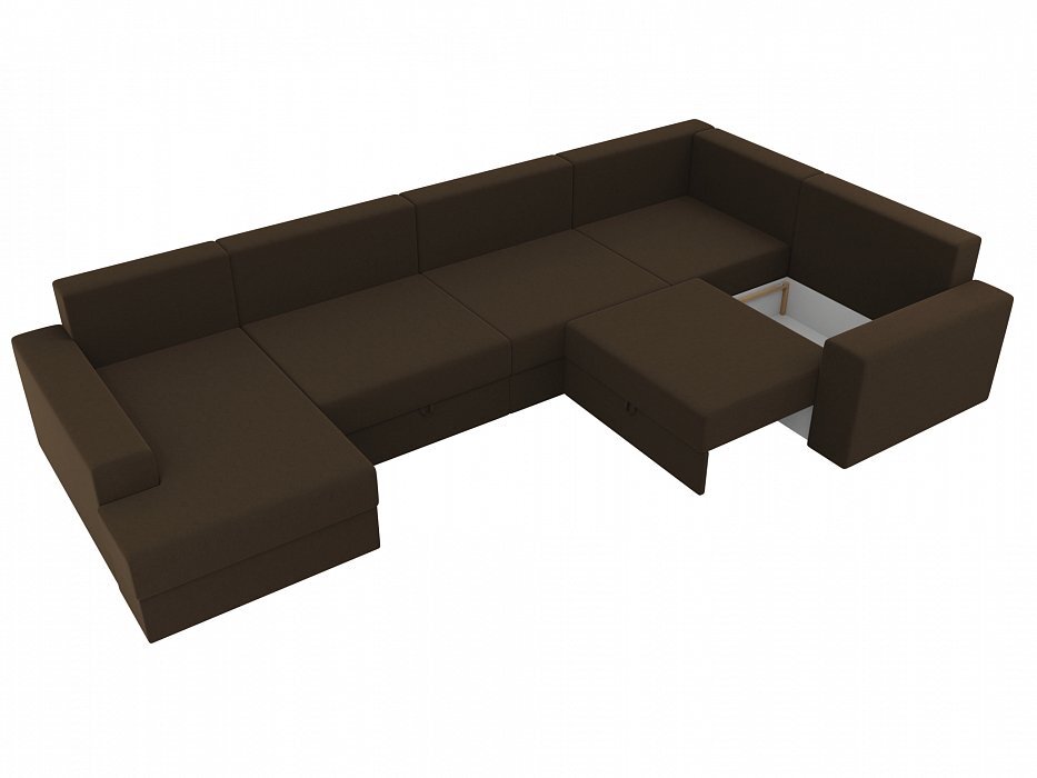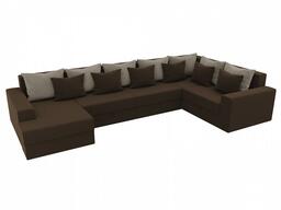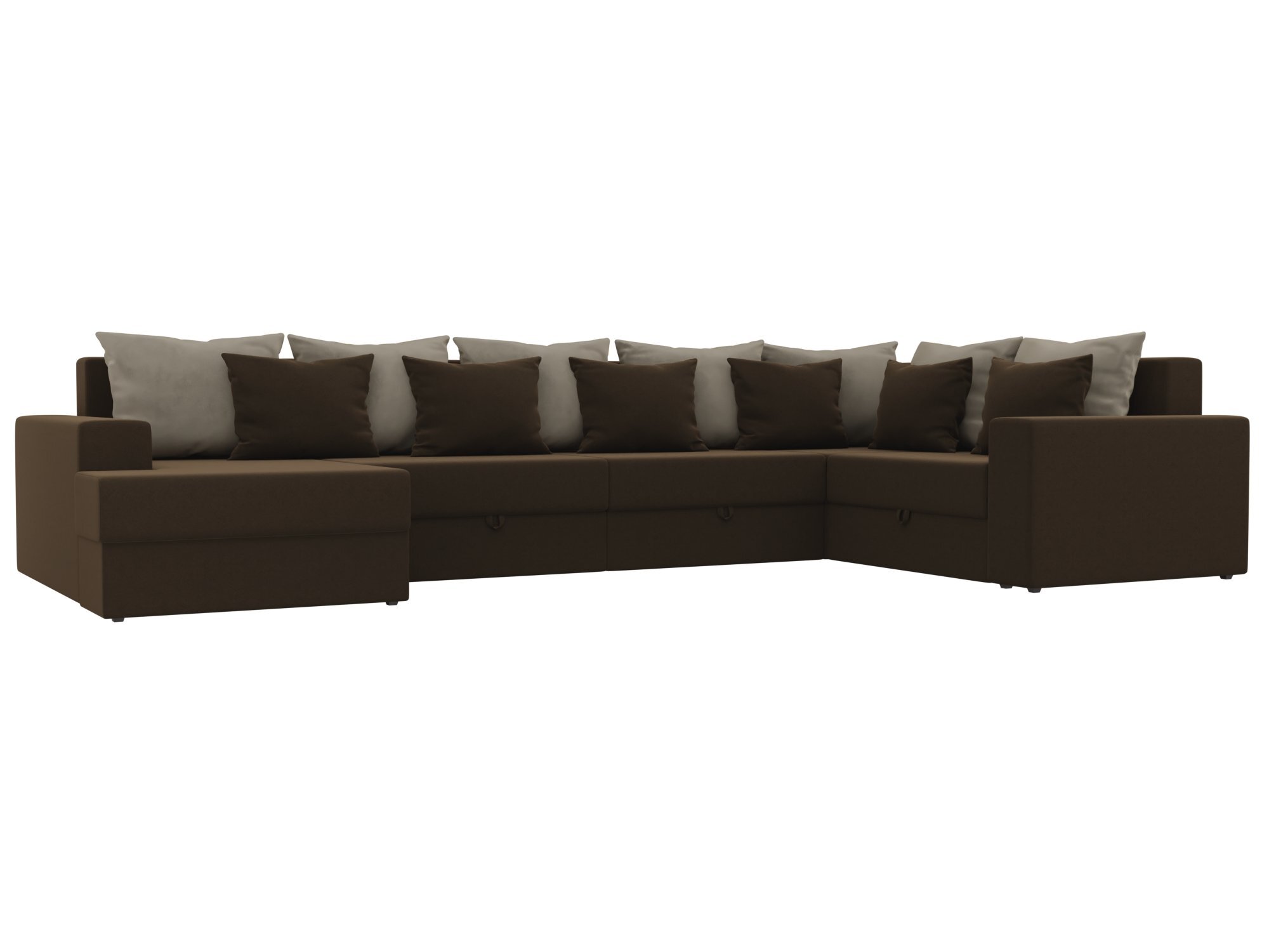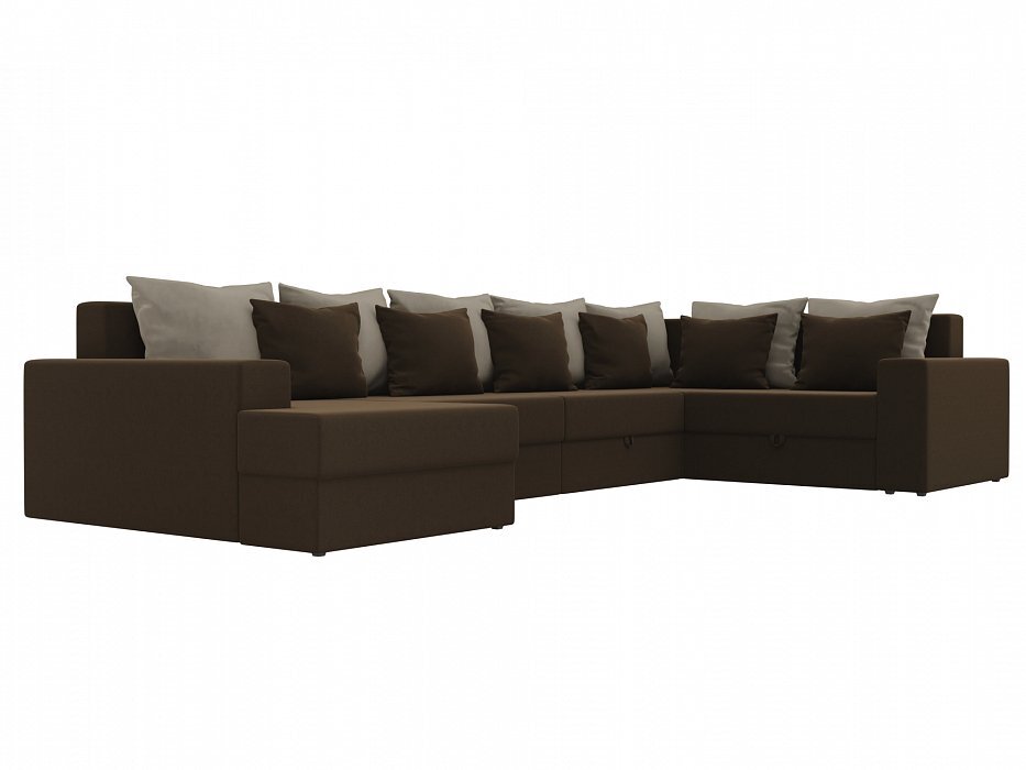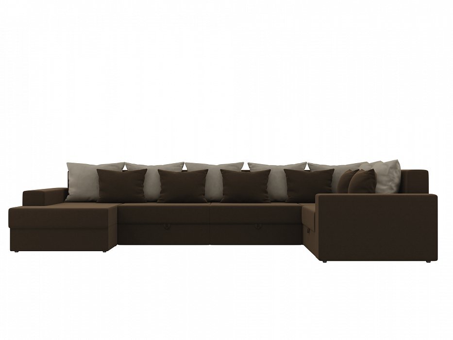 П-образный диван Мэдисон Микровельвет коричневый\бежевый\коричневый