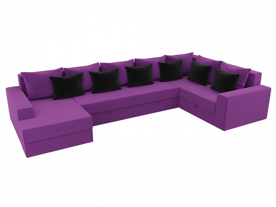 П-образный диван Мэдисон Микровельвет Фиолетовый\Фиолетовый\Черный