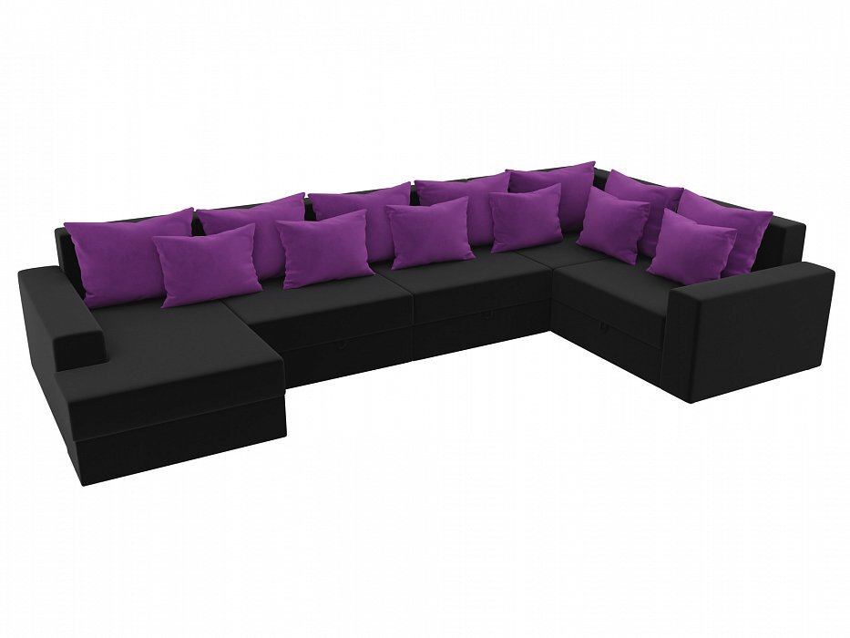 П-образный диван Мэдисон Микровельвет Черный\Фиолетовый\Фиолетовый