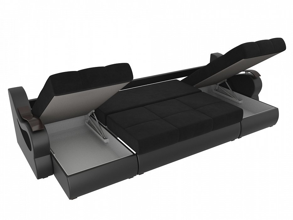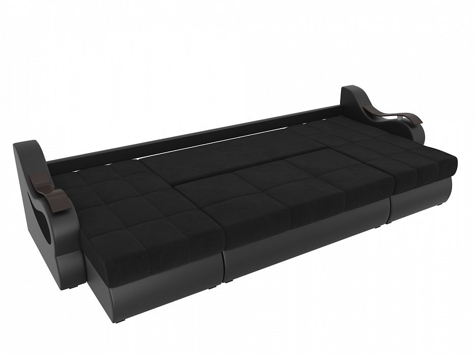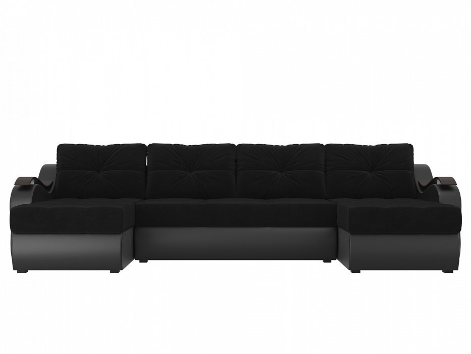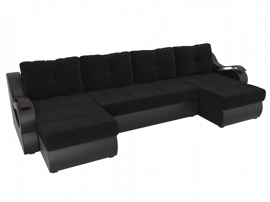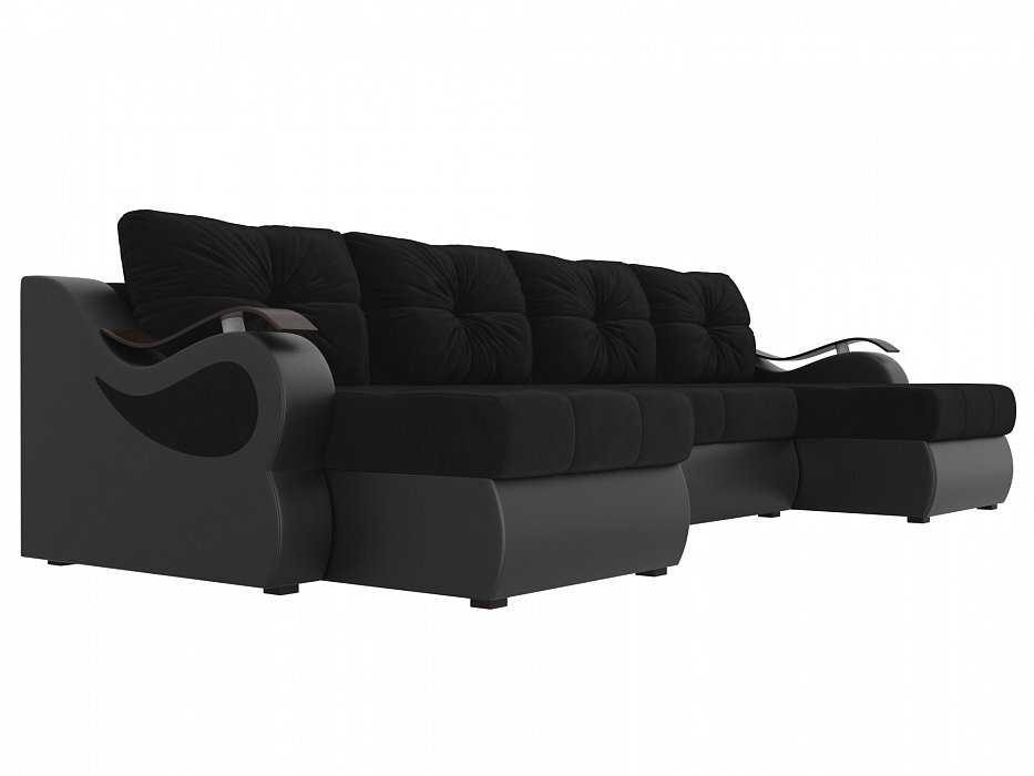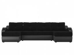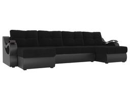 П-образный диван Меркурий Велюр\Экокожа черный\черный