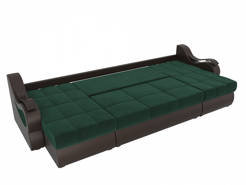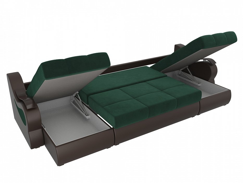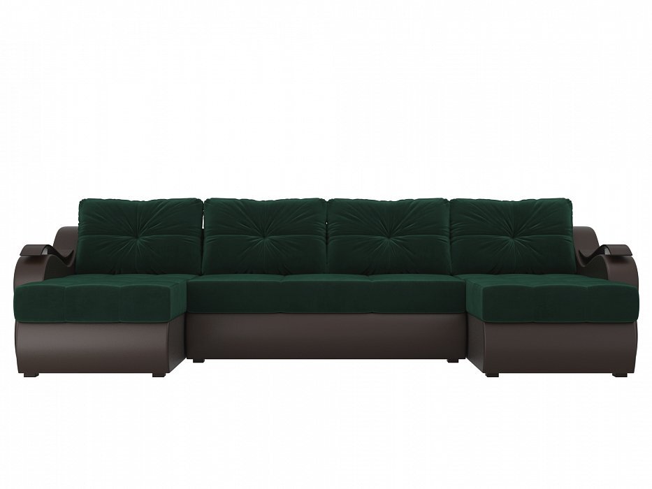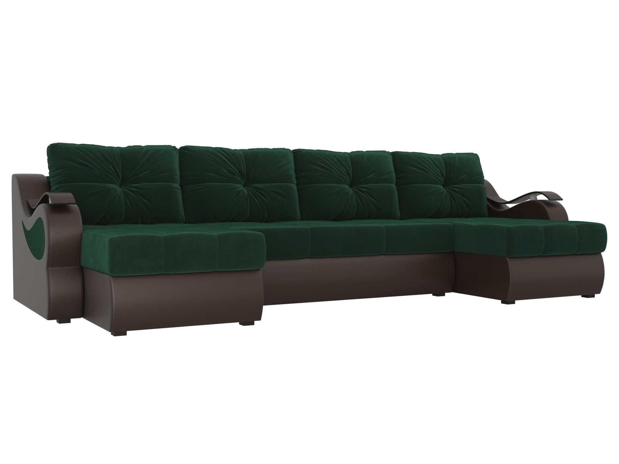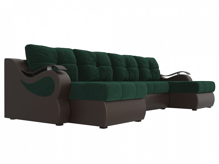 П-образный диван Меркурий Велюр\Экокожа зеленый\коричневый
