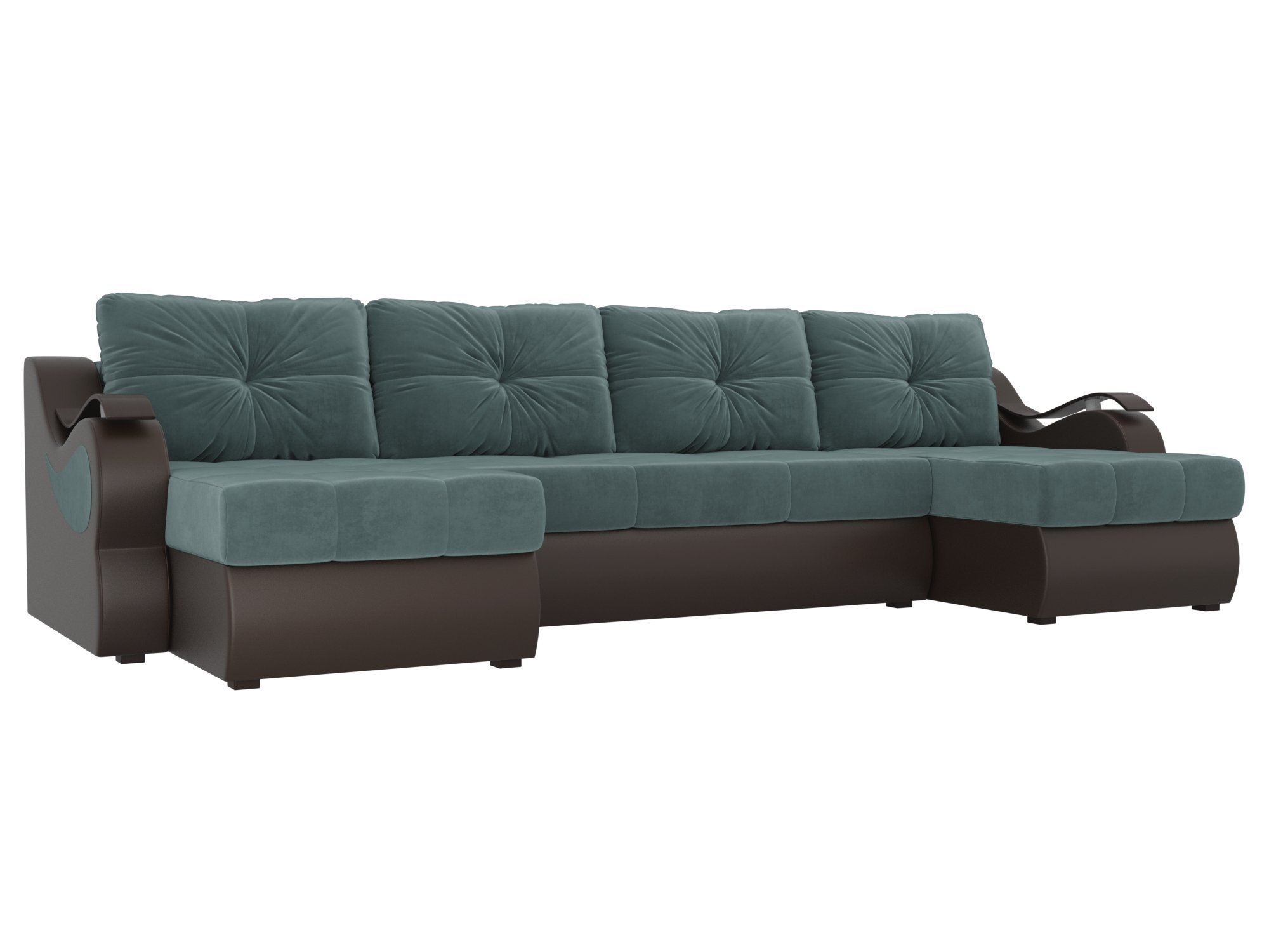П-образный диван Меркурий Велюр\Экокожа Бирюзовый\Коричневый